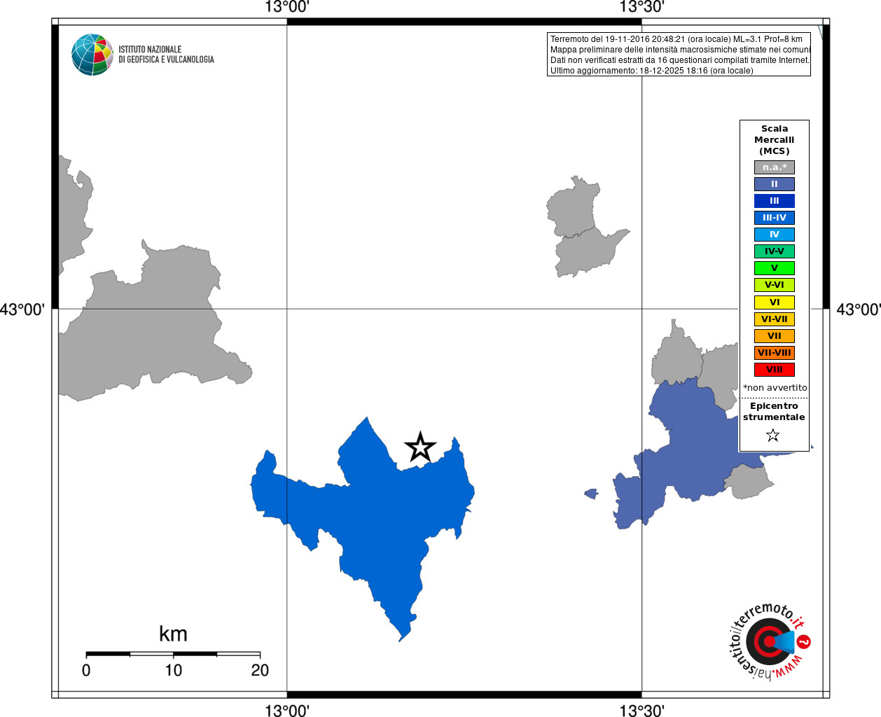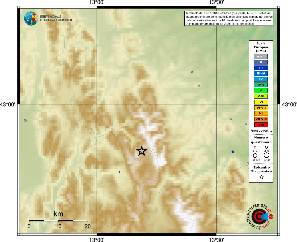 - 16 utilizzati per elaborare la mappa, su un totale di 18