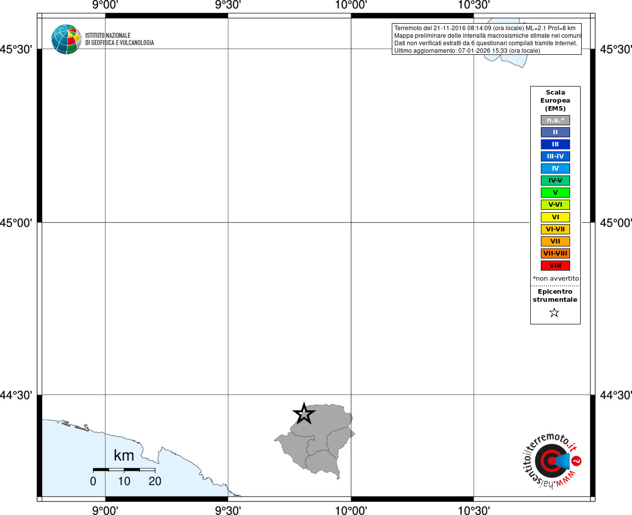 - Coordinate Epicentrali