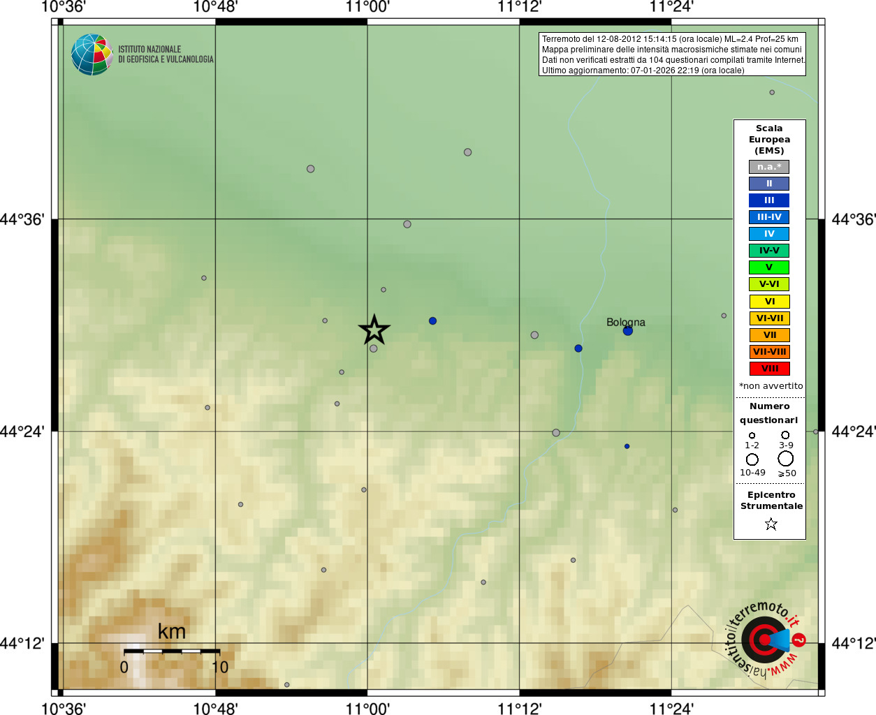 - 104 utilizzati per elaborare la mappa, su un totale di 110