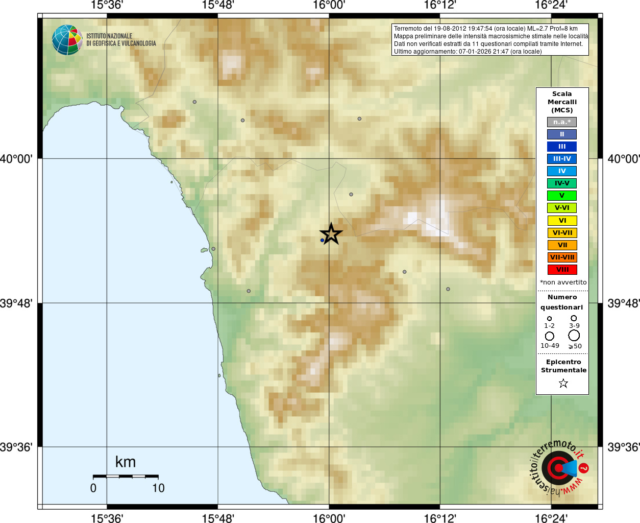 - Coordinate Epicentrali