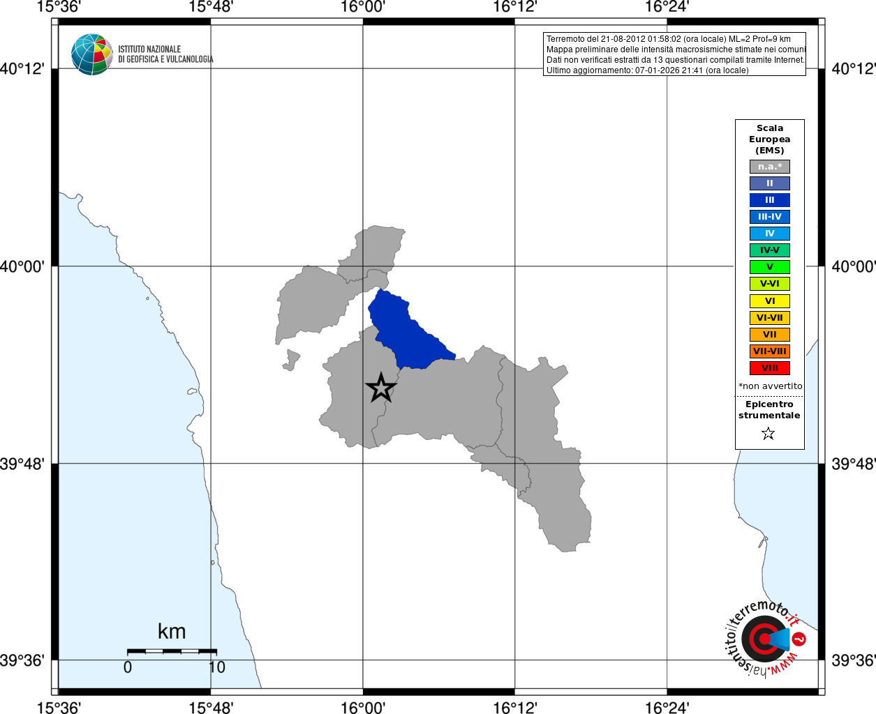 - Coordinate Epicentrali