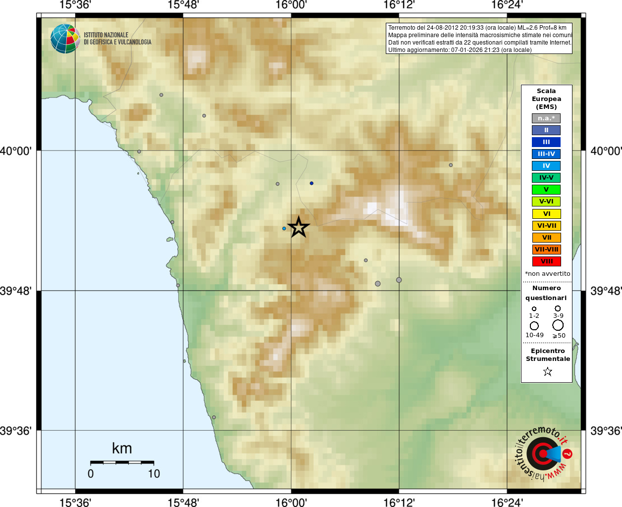 - Coordinate Epicentrali