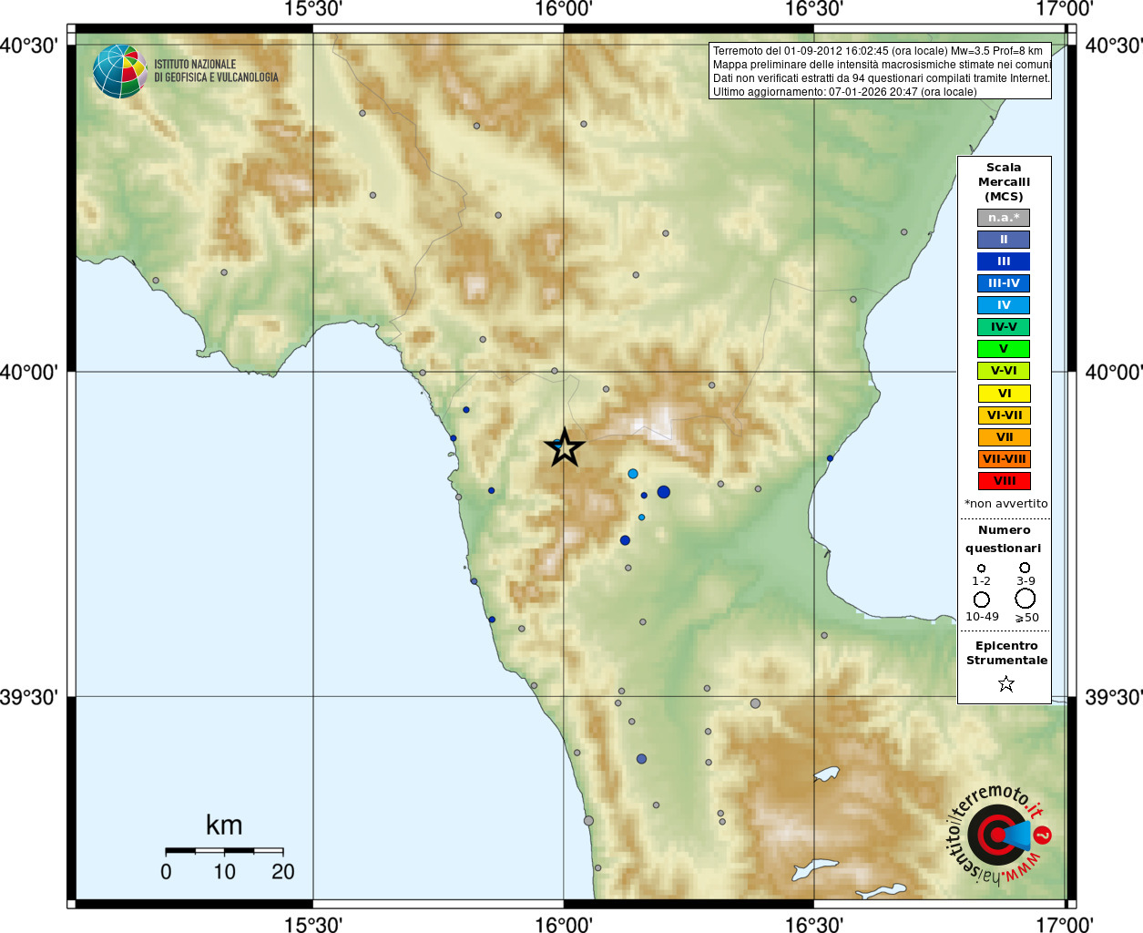 - 94 utilizzati per elaborare la mappa, su un totale di 108