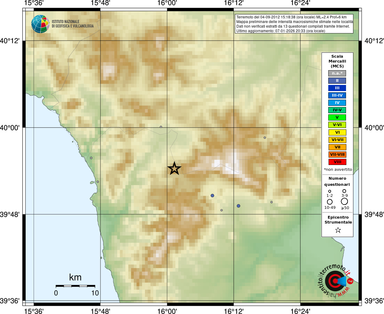 - Coordinate Epicentrali