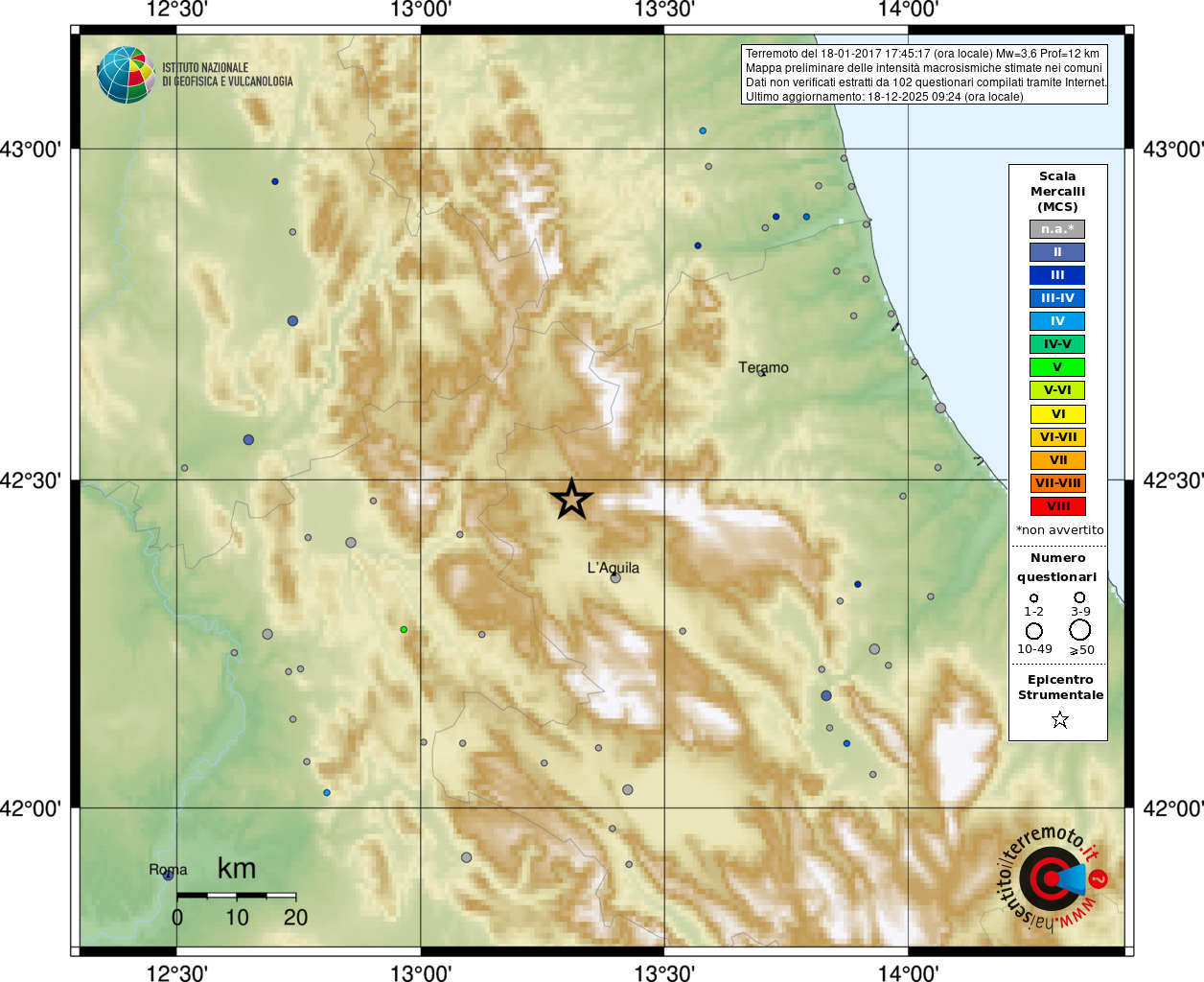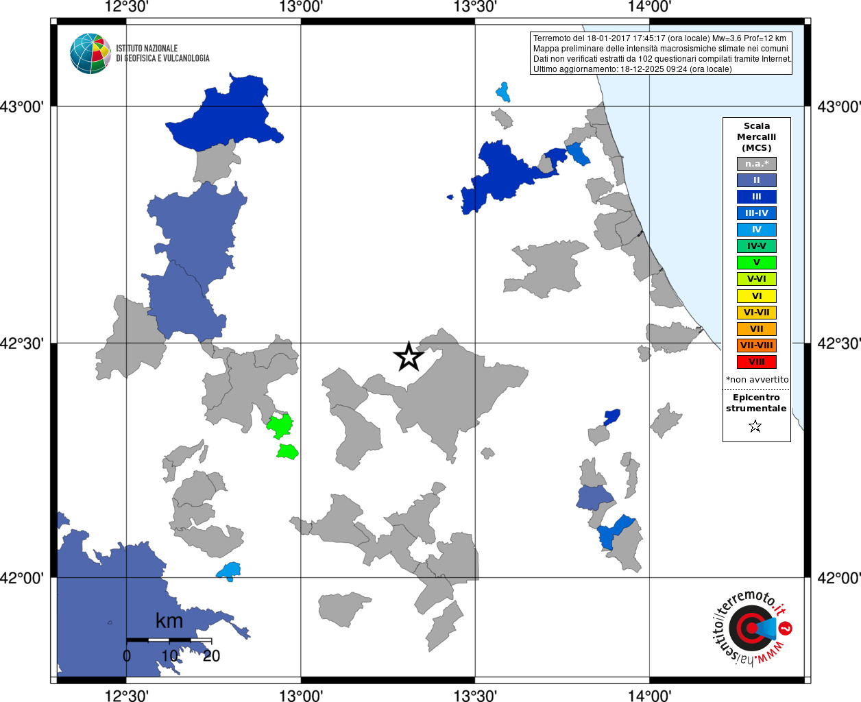 - 102 utilizzati per elaborare la mappa, su un totale di 108