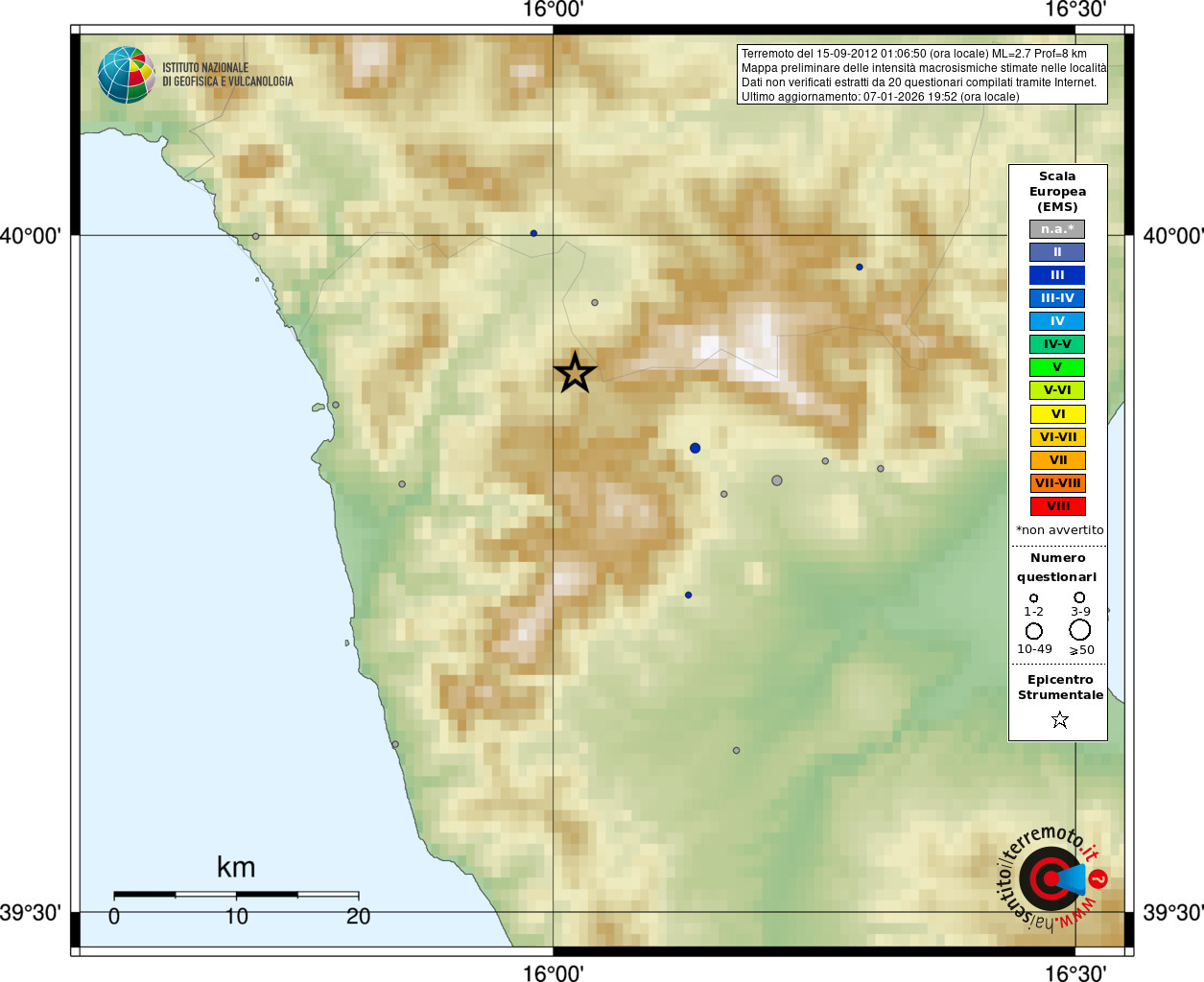 - Coordinate Epicentrali