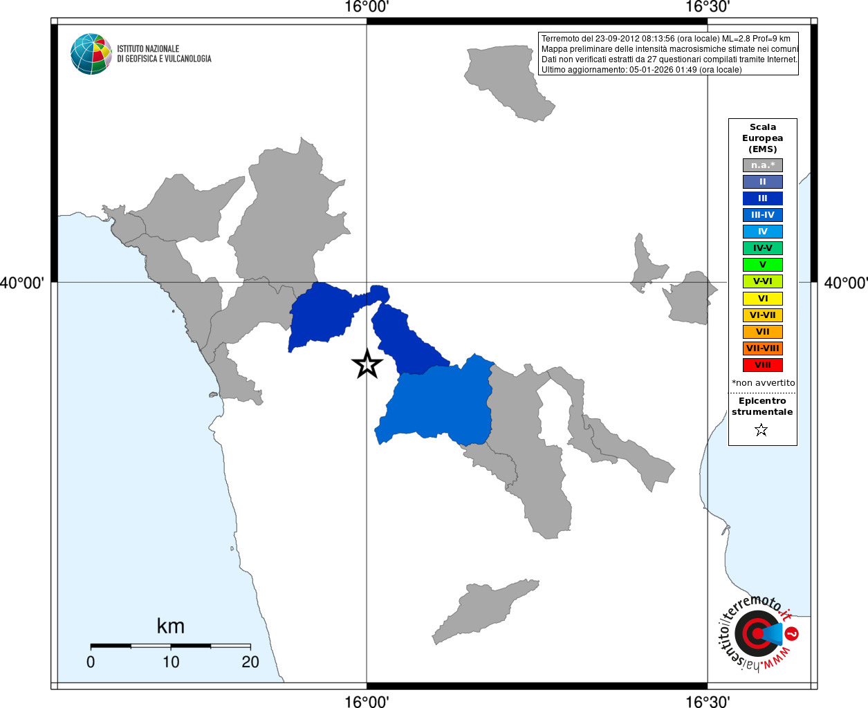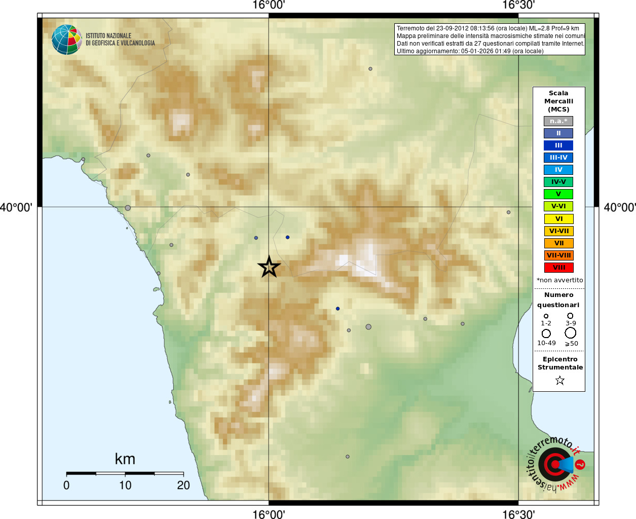 - Coordinate Epicentrali