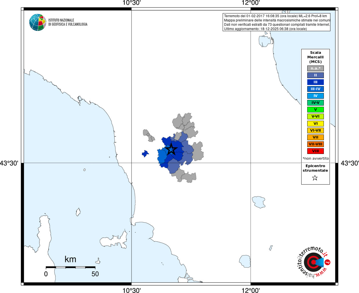 - 73 utilizzati per elaborare la mappa, su un totale di 76