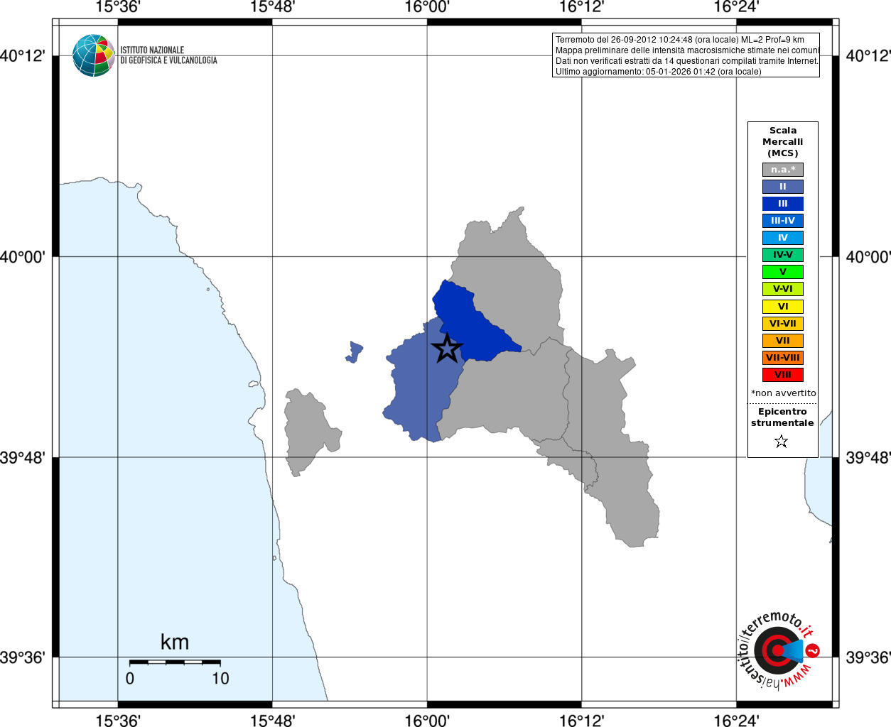 - Coordinate Epicentrali