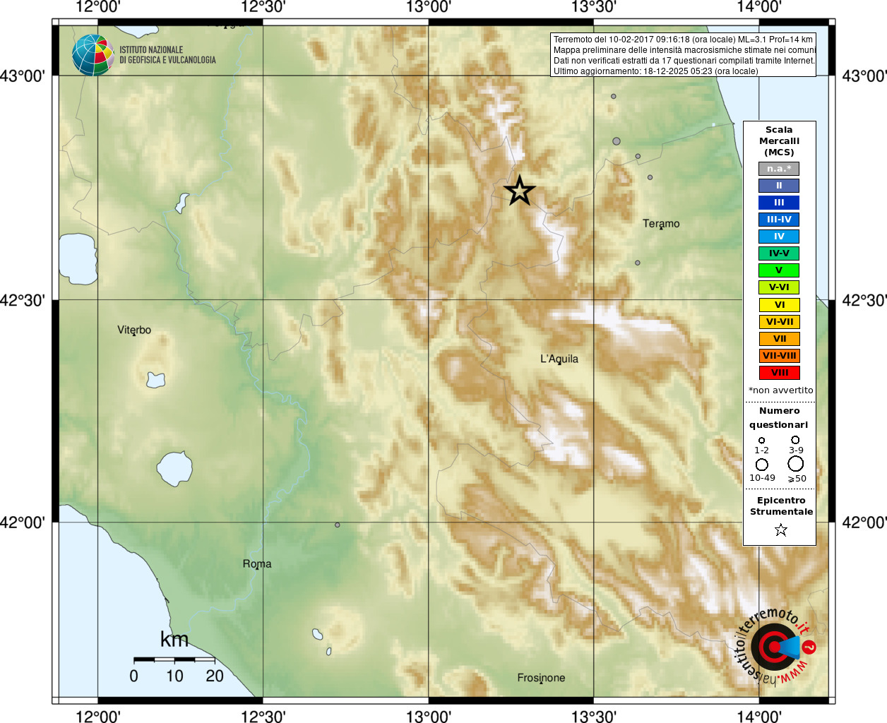 - 17 utilizzati per elaborare la mappa, su un totale di 18