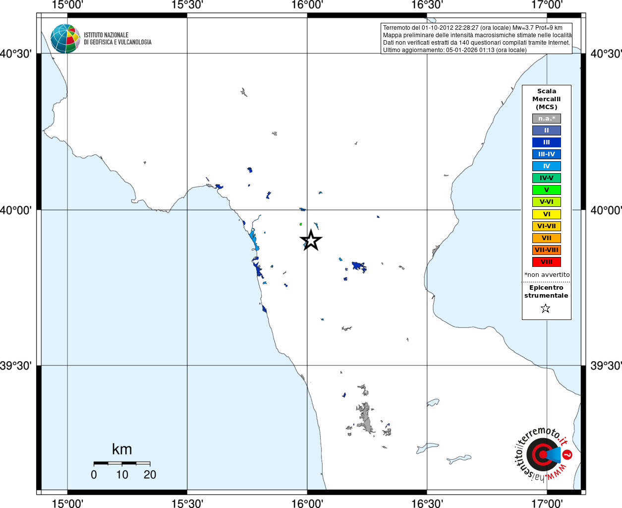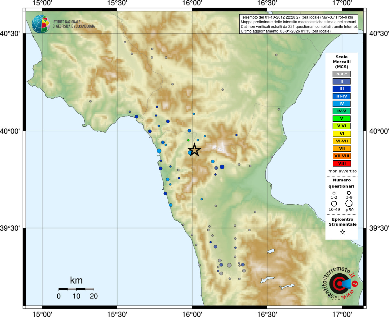 - Coordinate Epicentrali