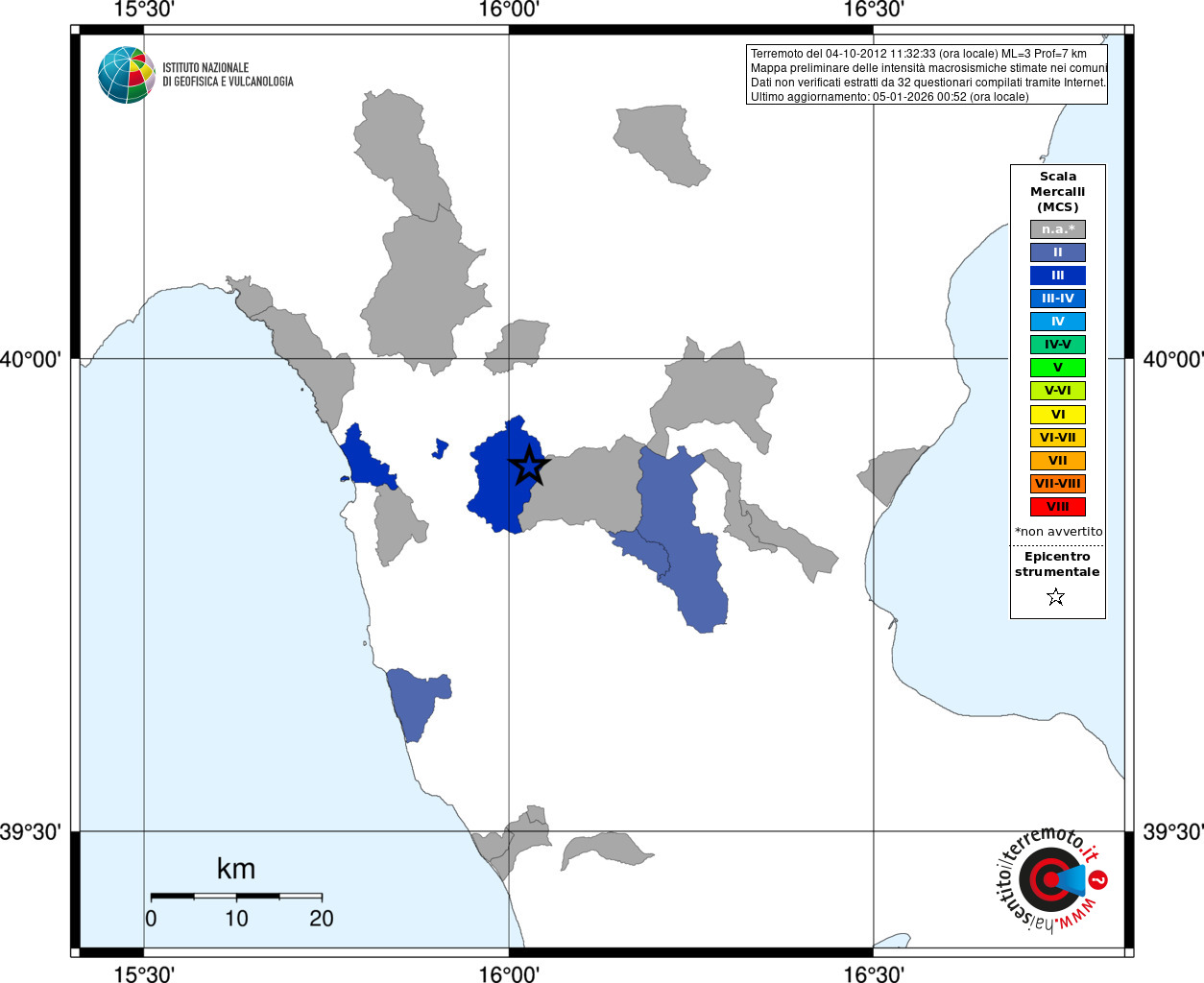- Coordinate Epicentrali