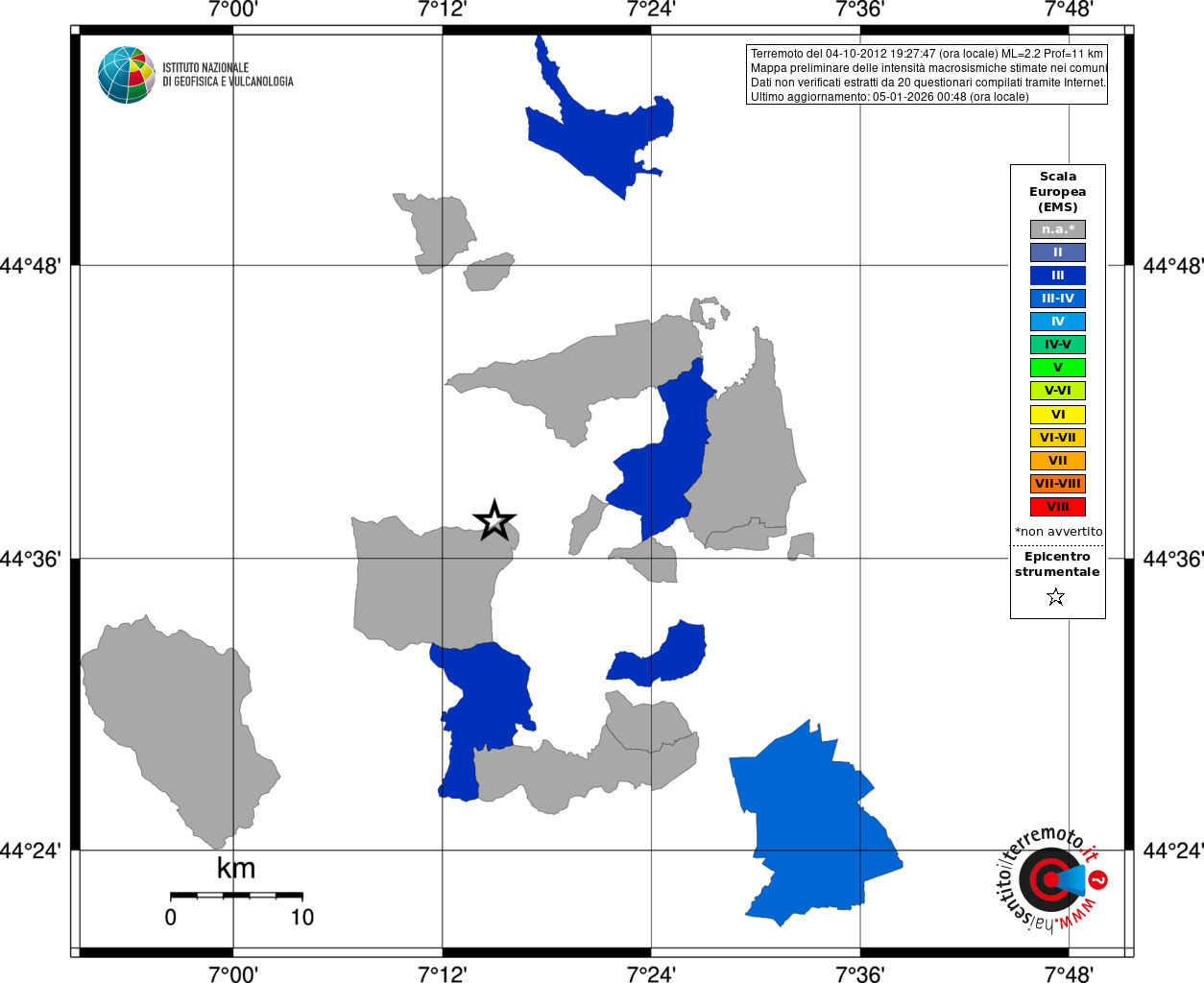 - Coordinate Epicentrali