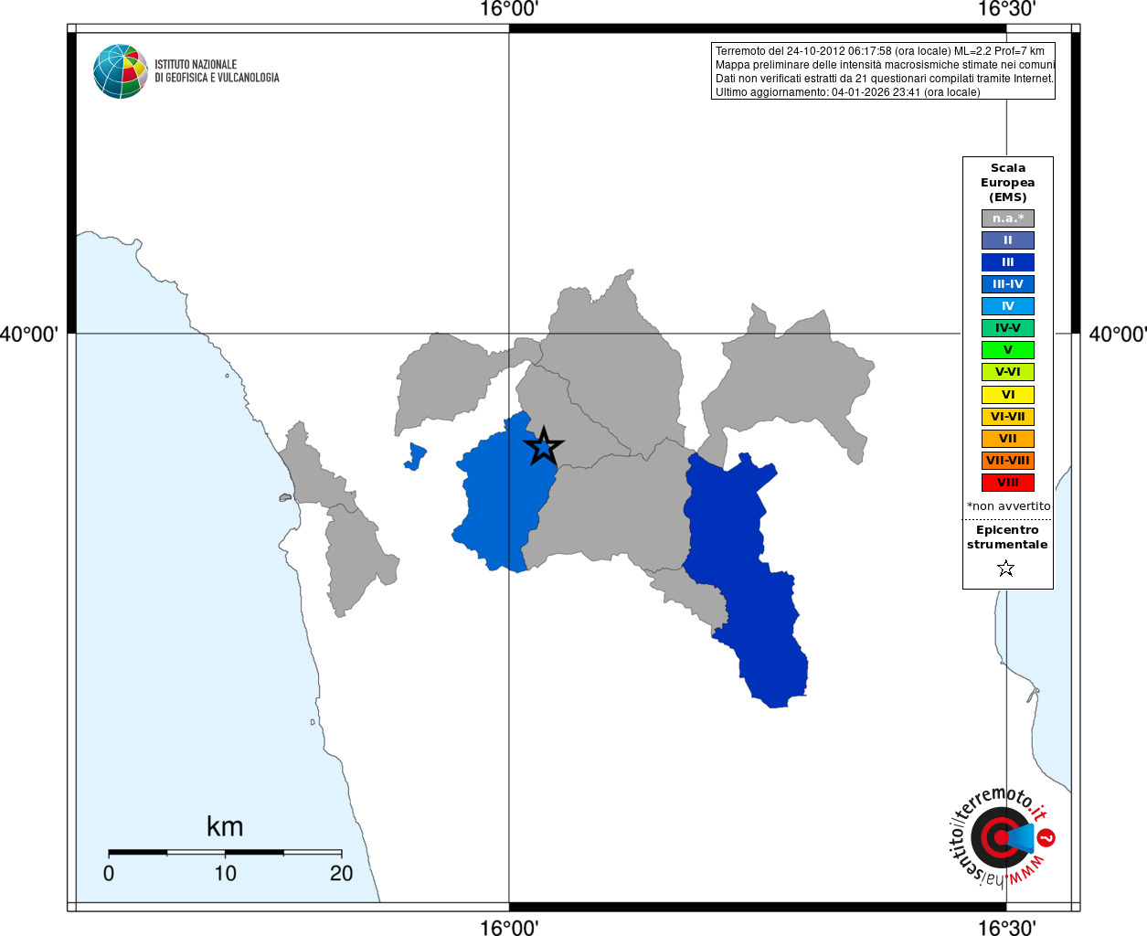 - Coordinate Epicentrali