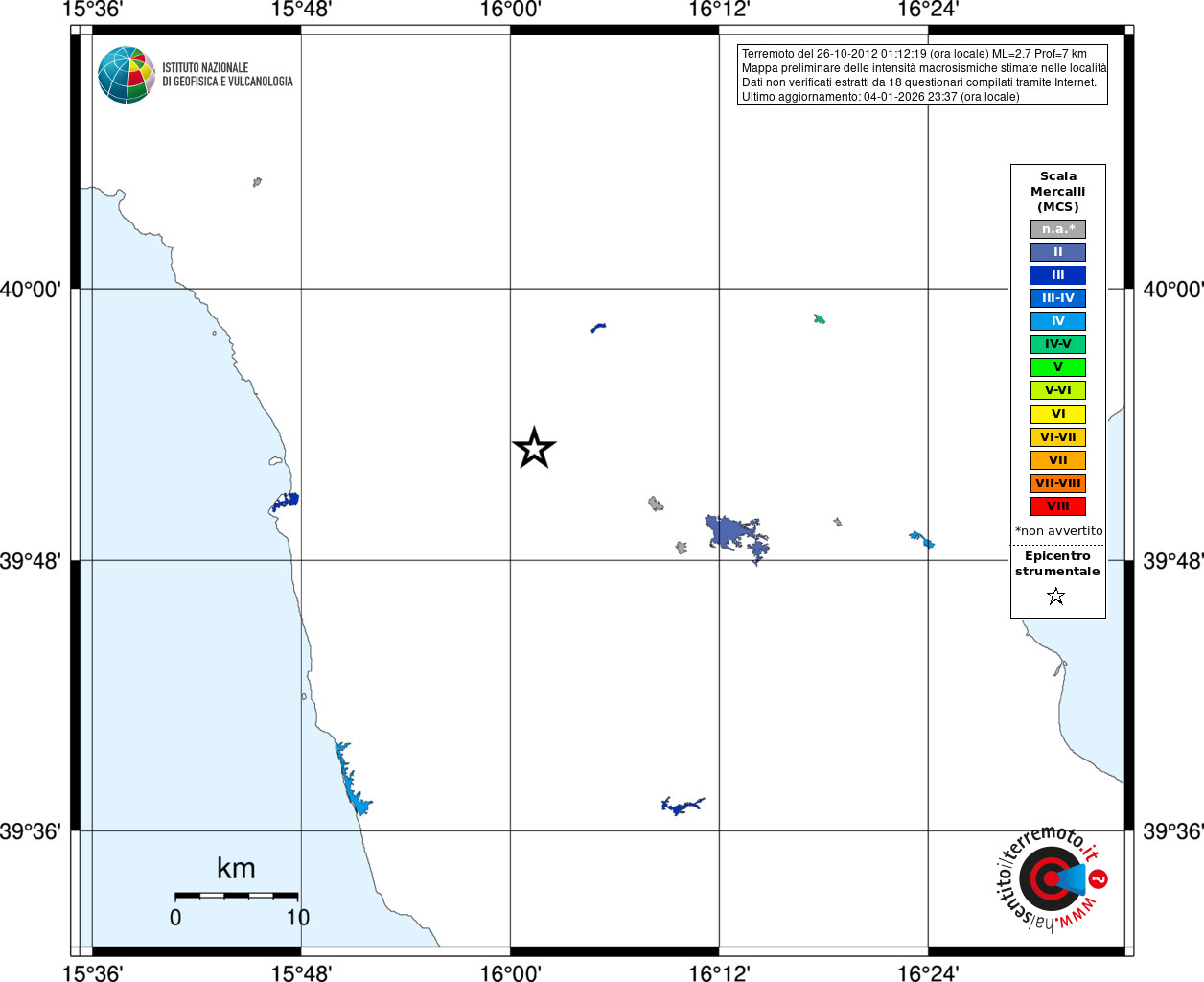 - Coordinate Epicentrali