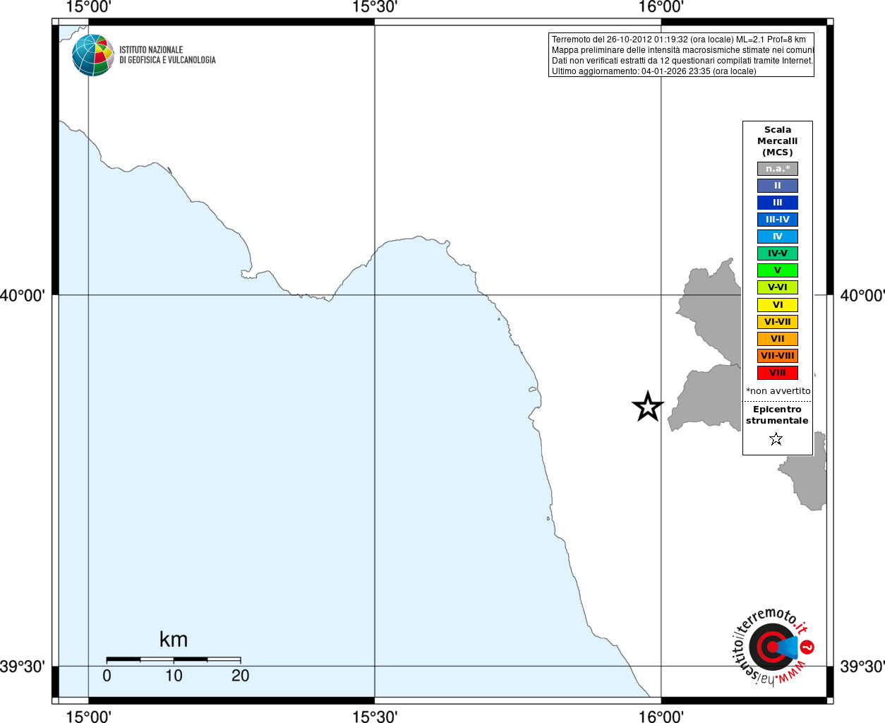 - Coordinate Epicentrali