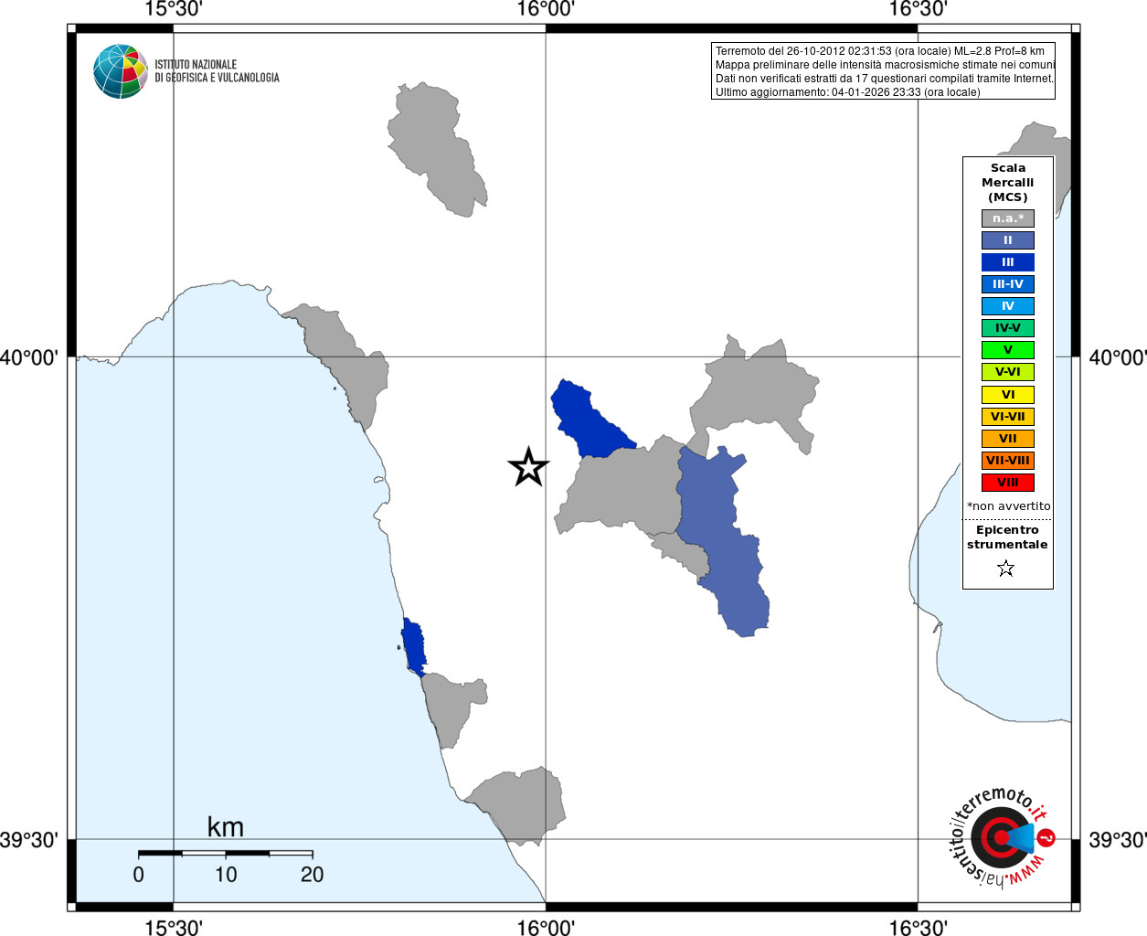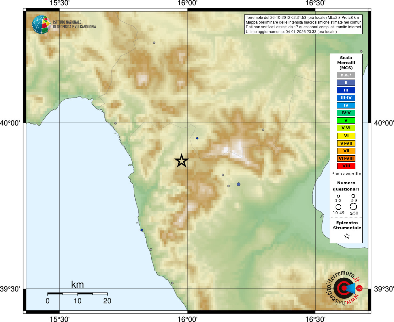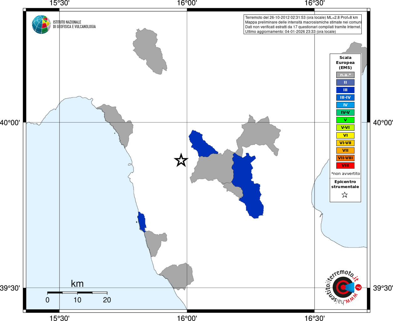 - Coordinate Epicentrali