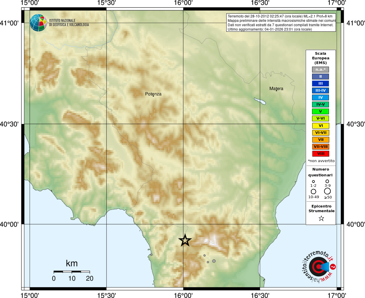 - Coordinate Epicentrali