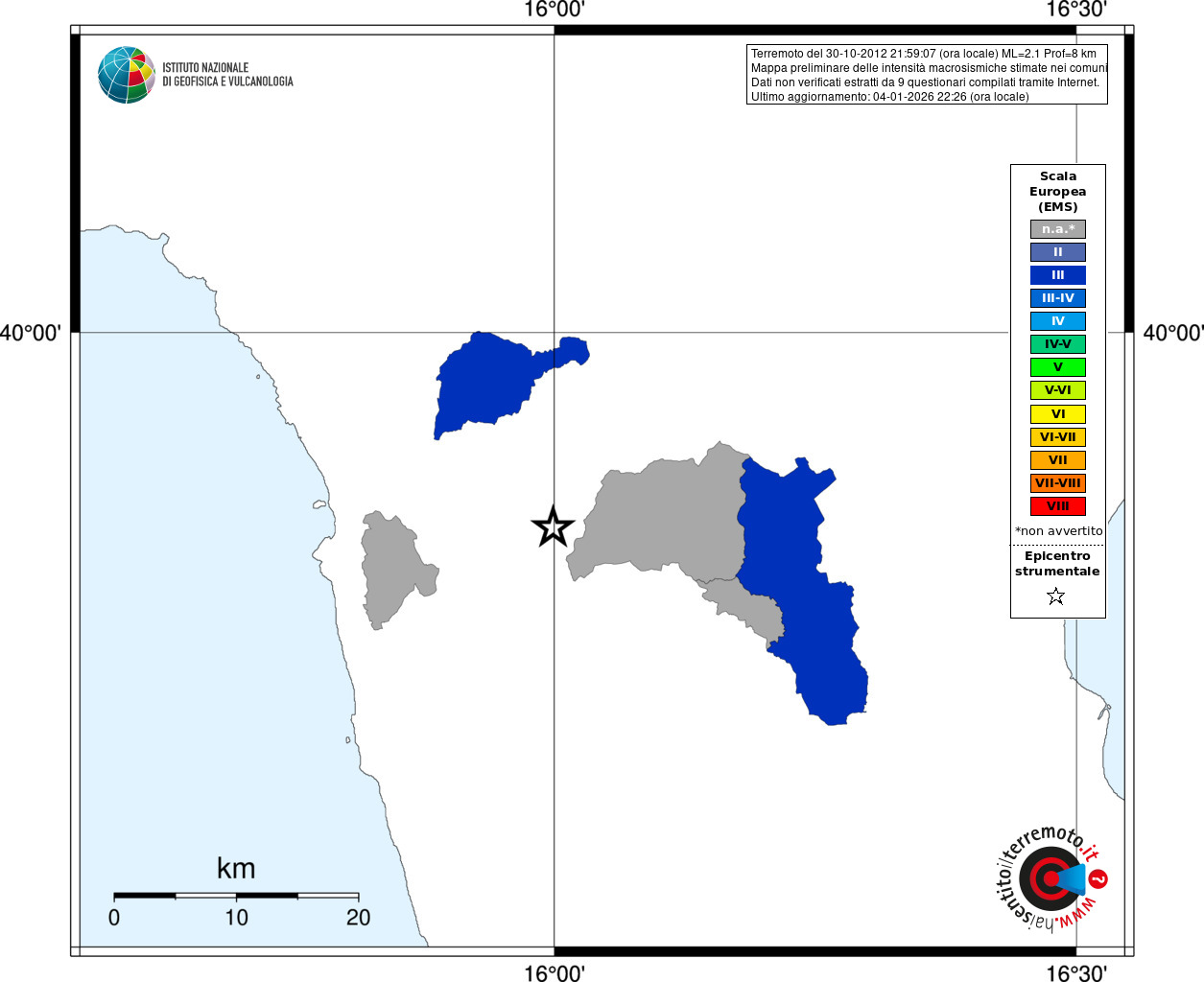 - Coordinate Epicentrali