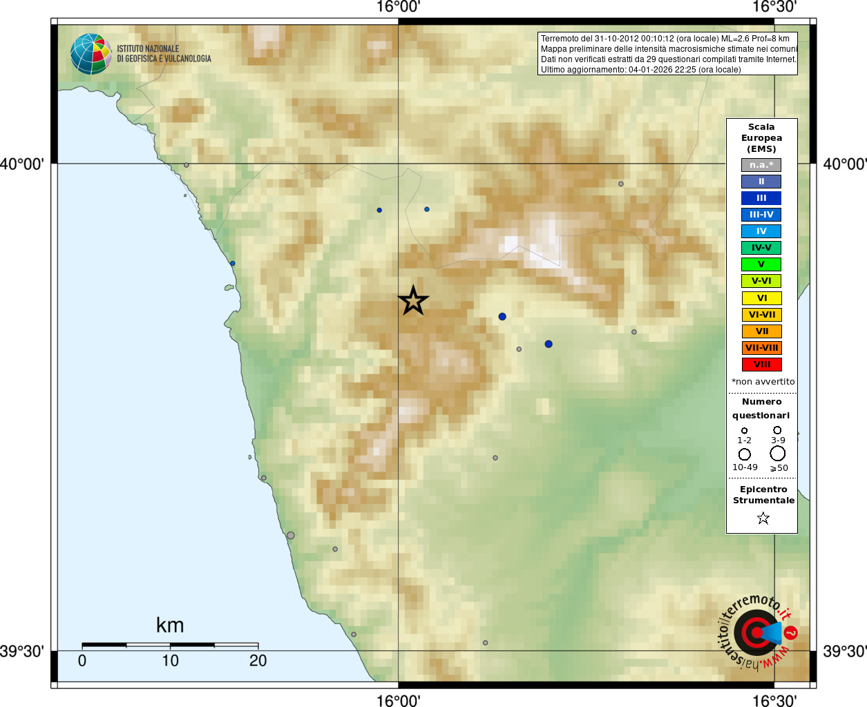 - Coordinate Epicentrali