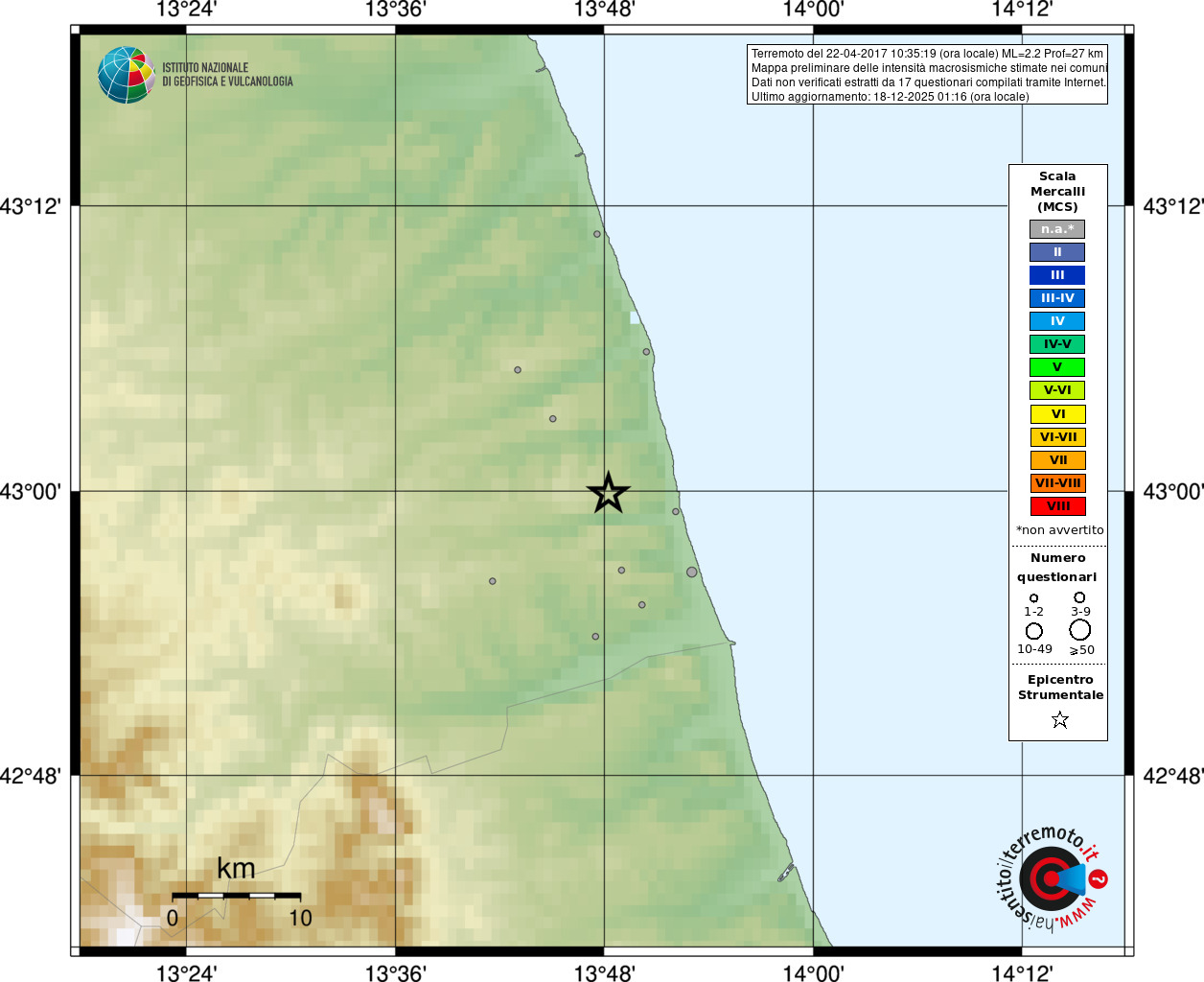 - 17 utilizzati per elaborare la mappa, su un totale di 17