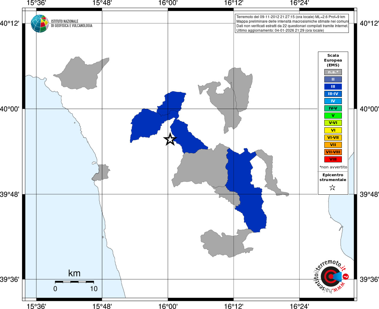 - Coordinate Epicentrali
