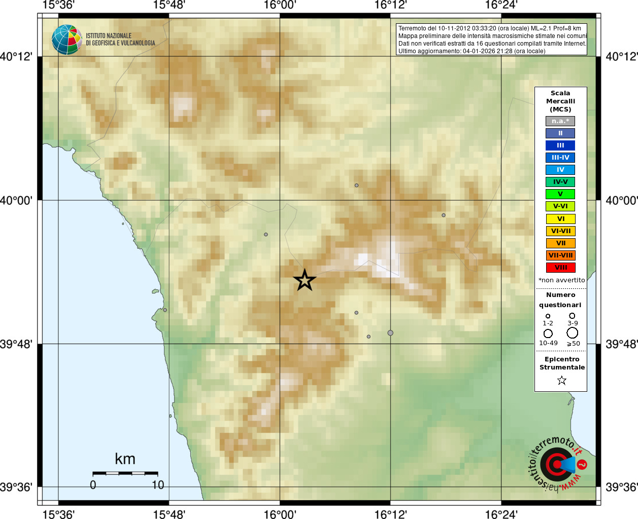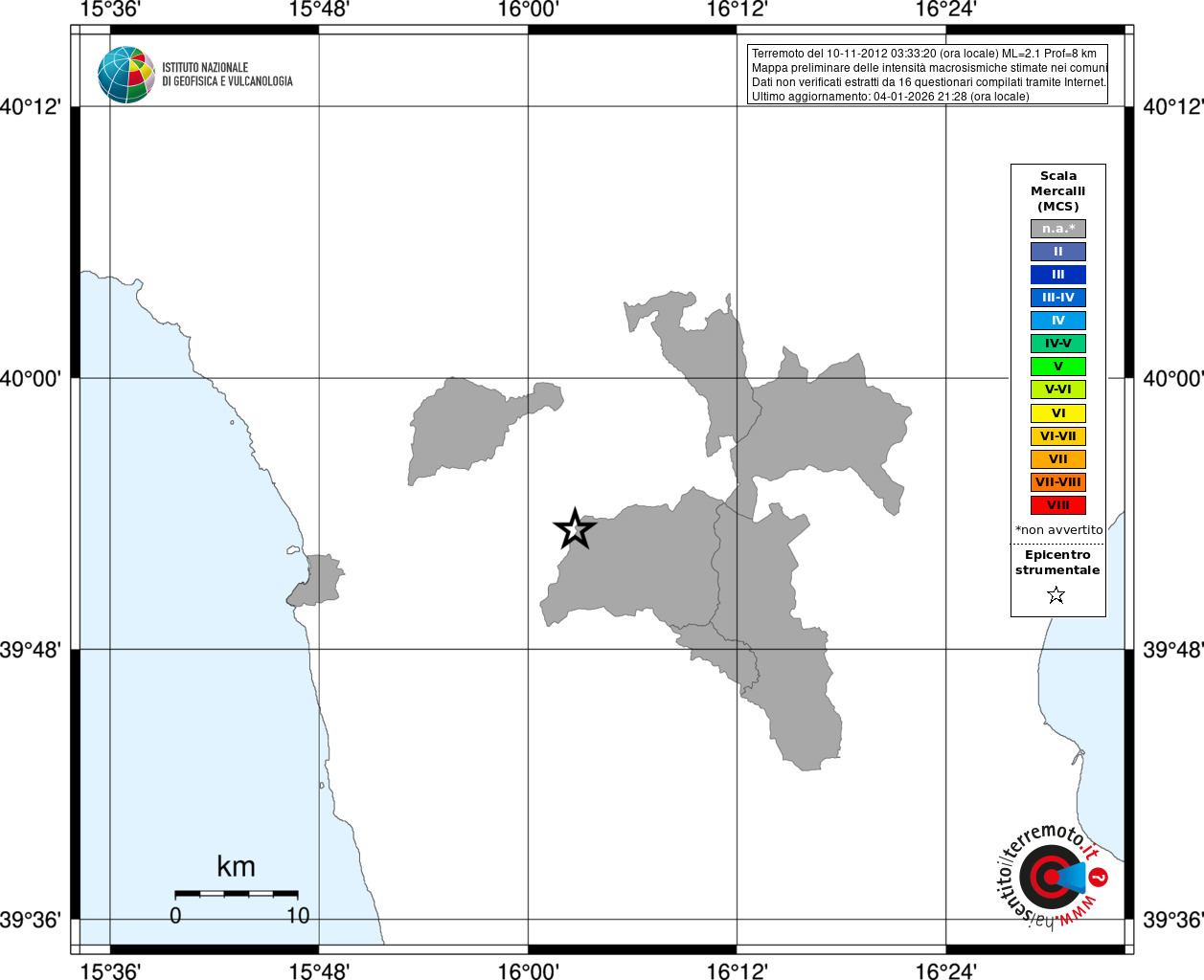 - Coordinate Epicentrali