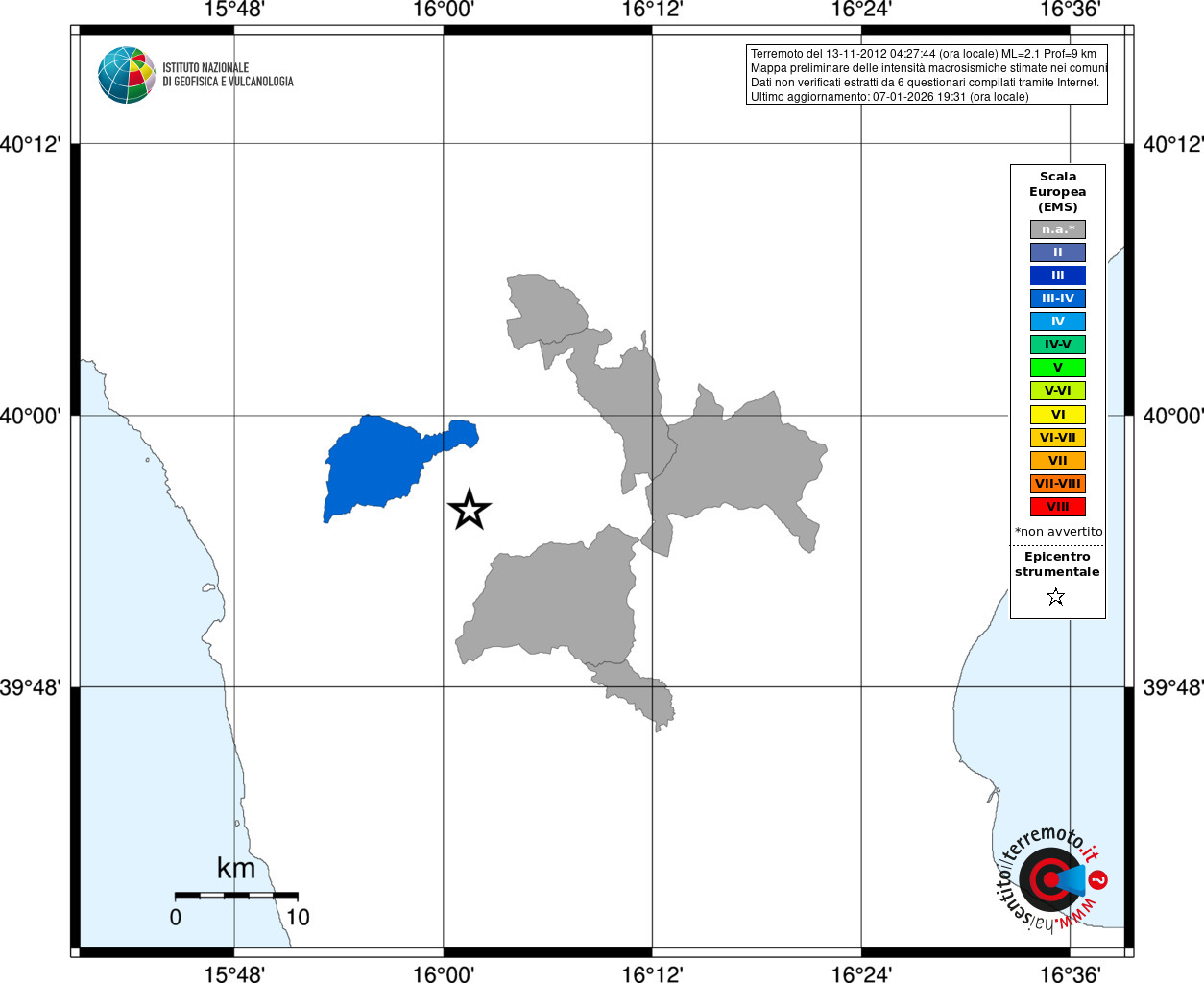 - Coordinate Epicentrali