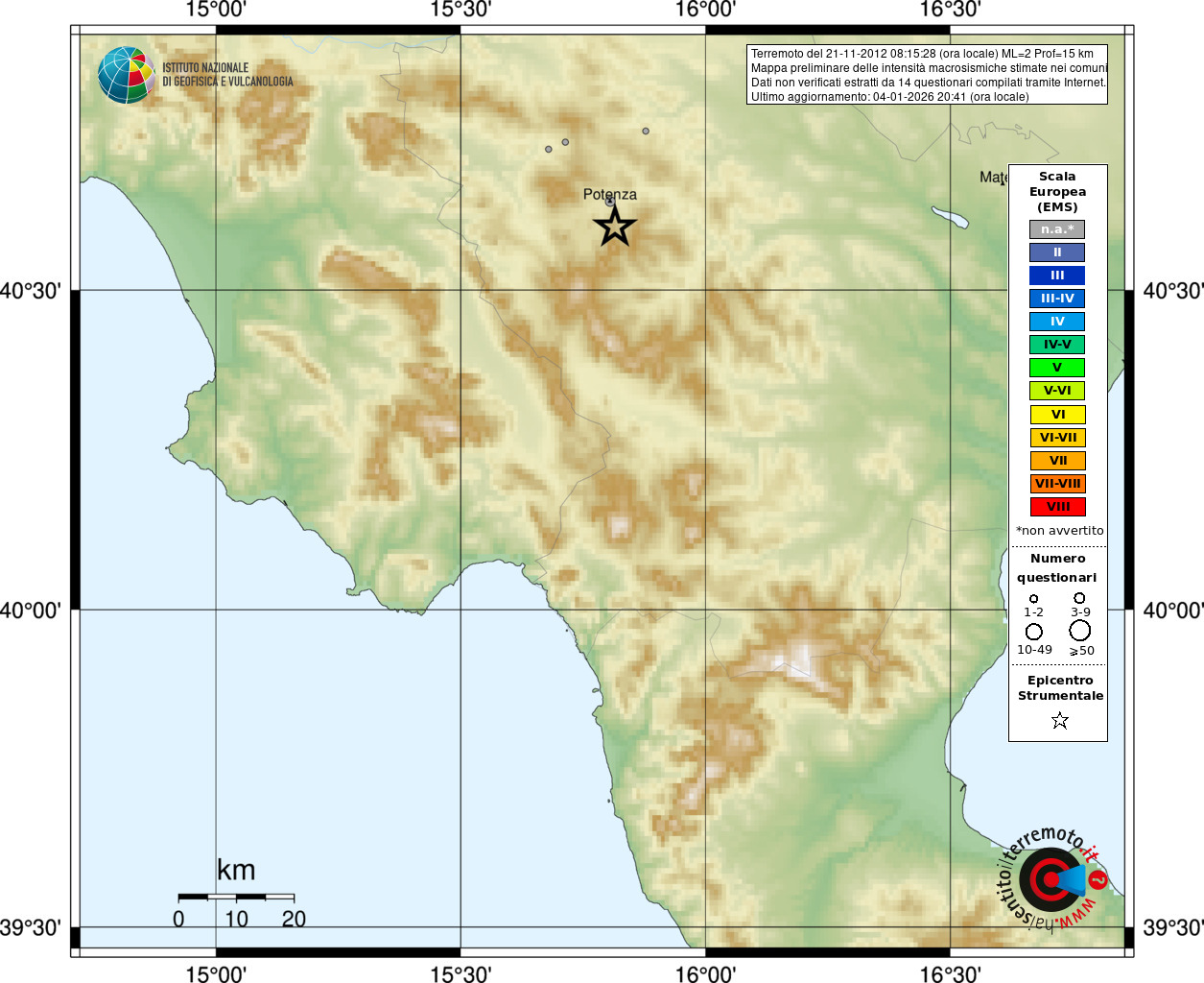 - Coordinate Epicentrali