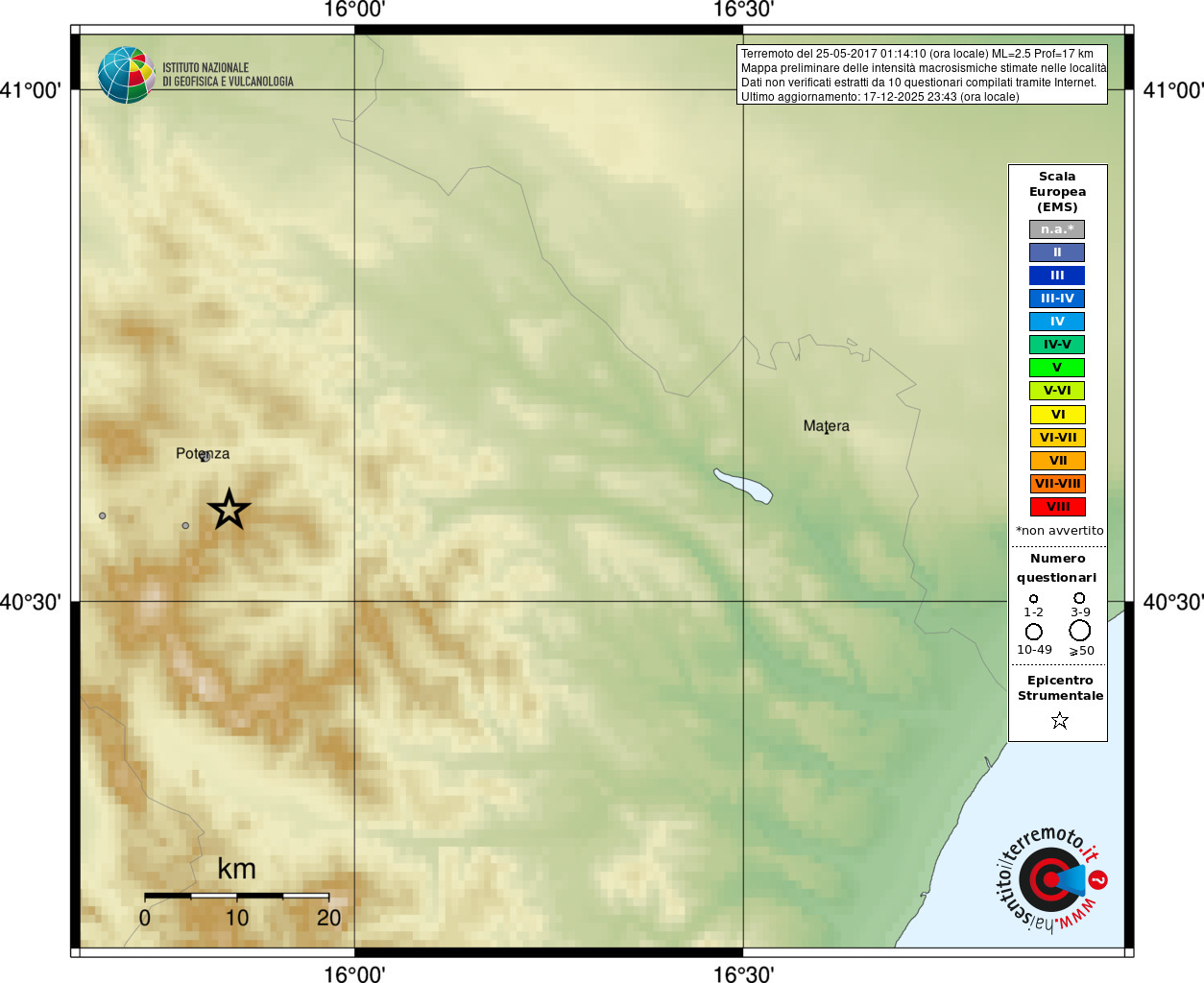 - Coordinate Epicentrali