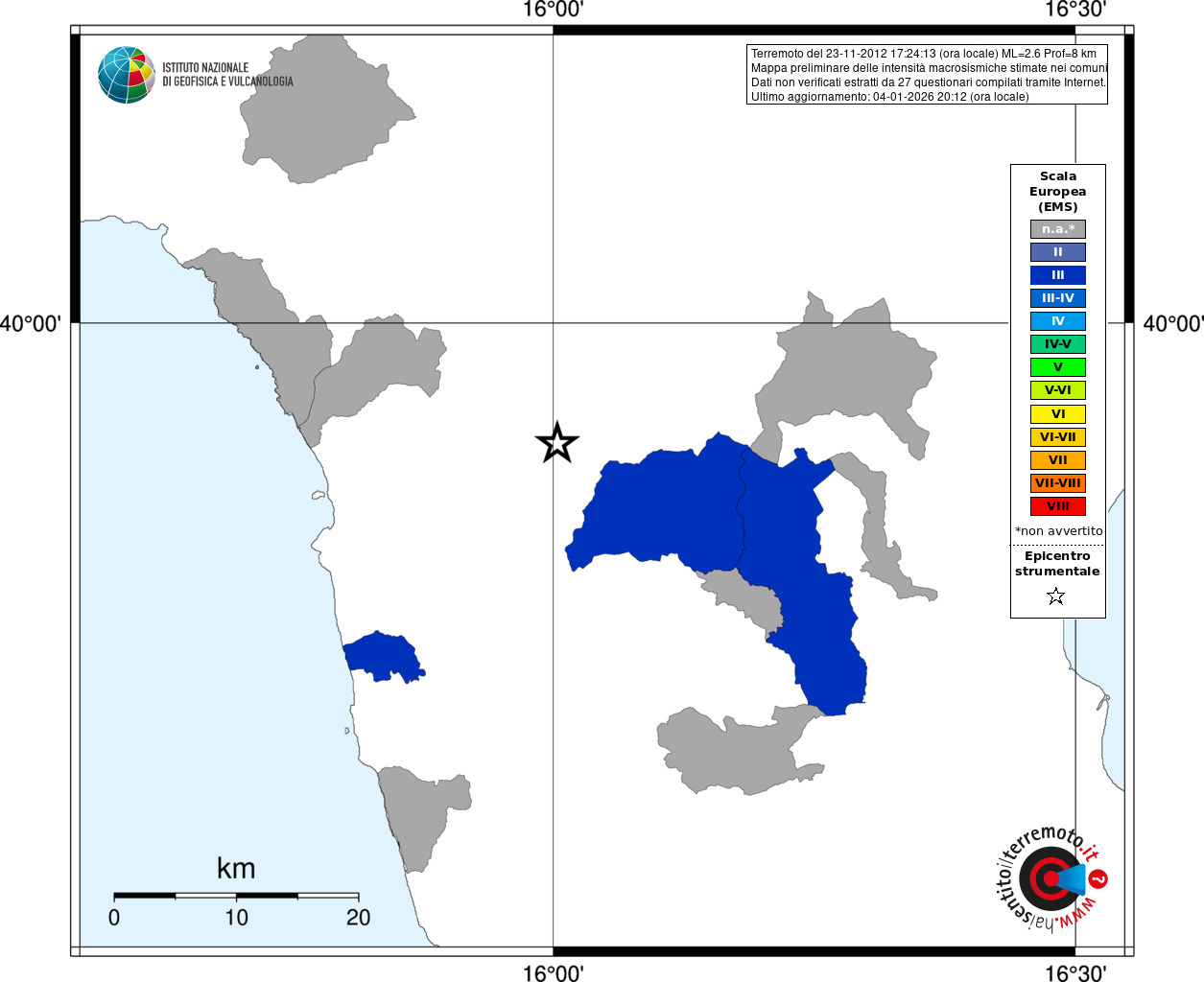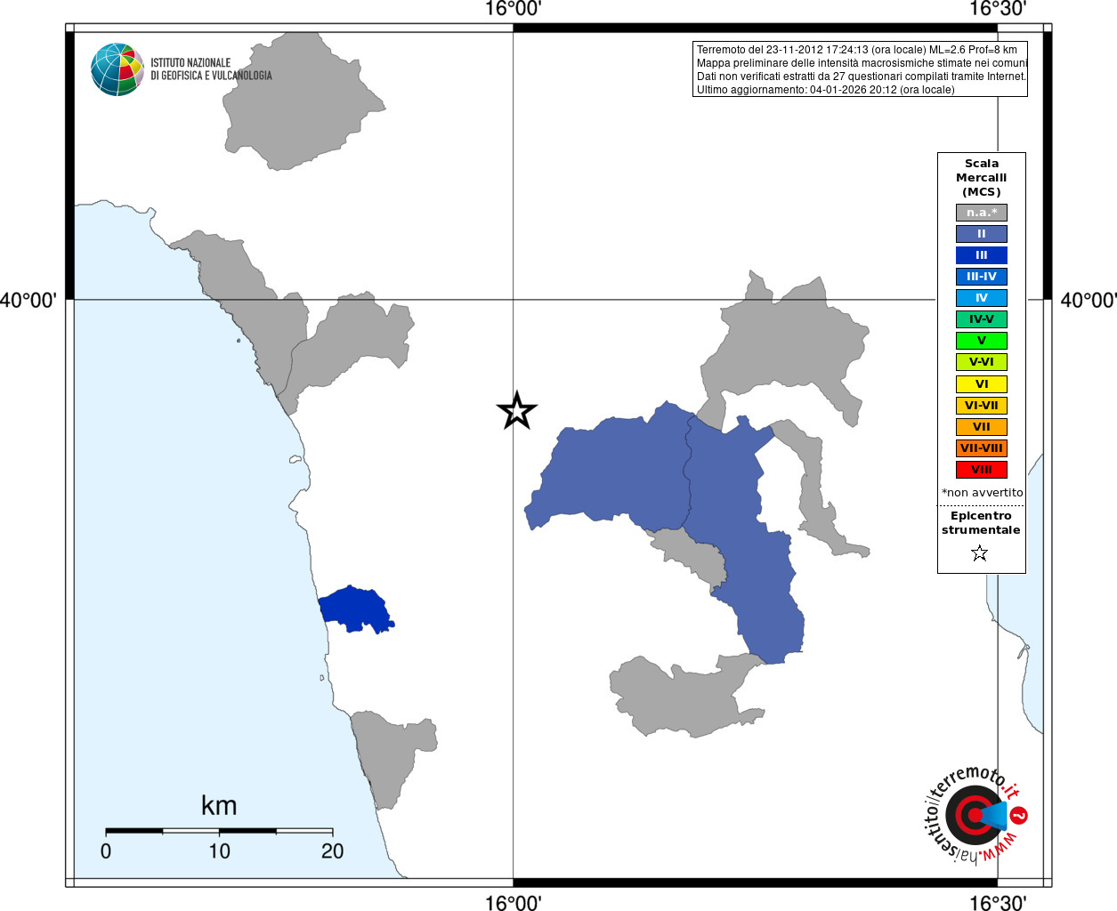 - Coordinate Epicentrali