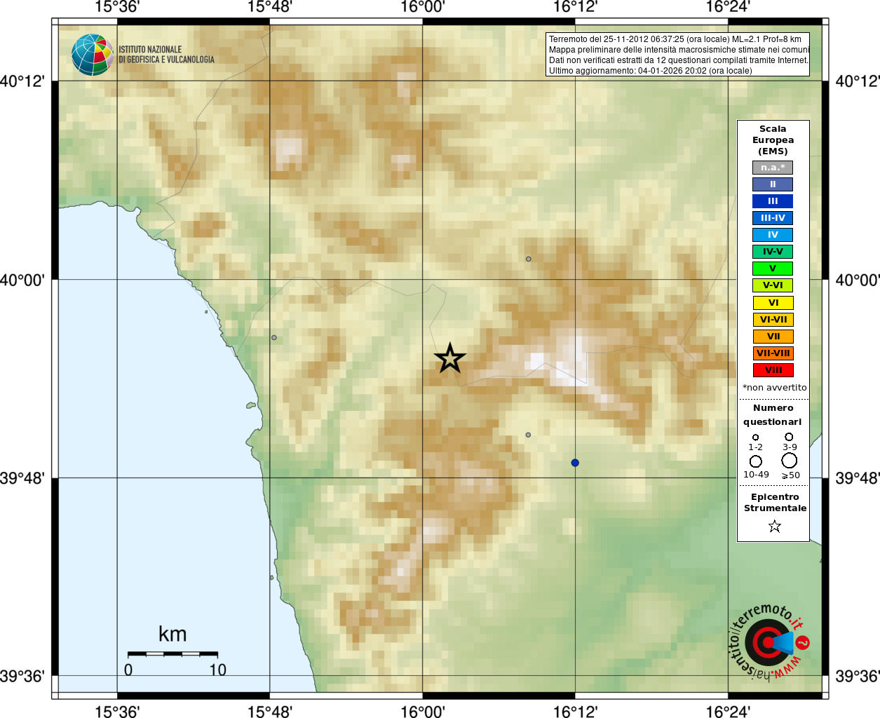 - Coordinate Epicentrali
