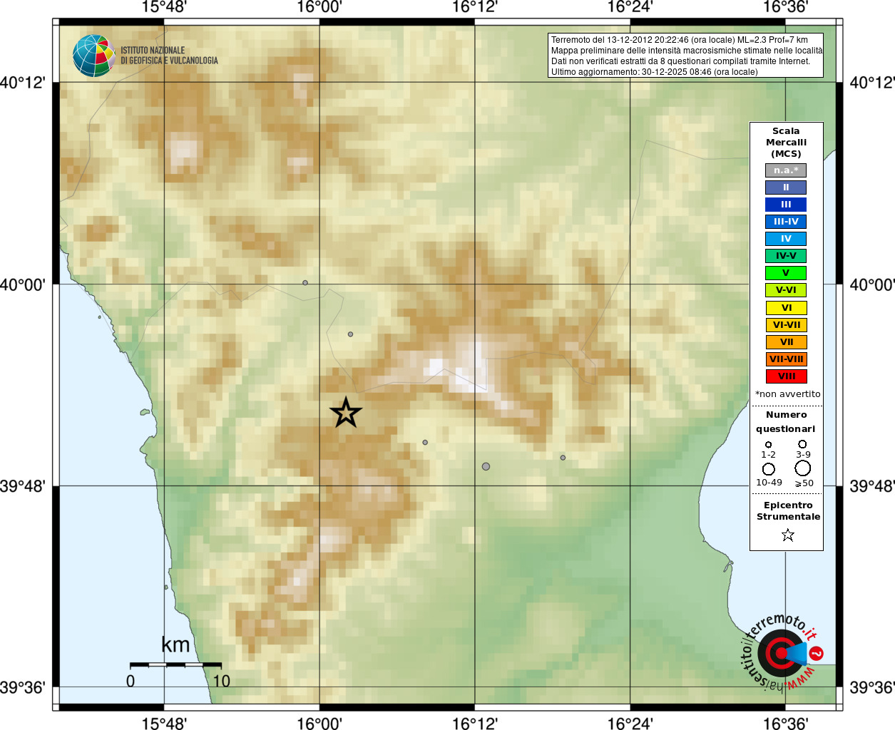 - Coordinate Epicentrali