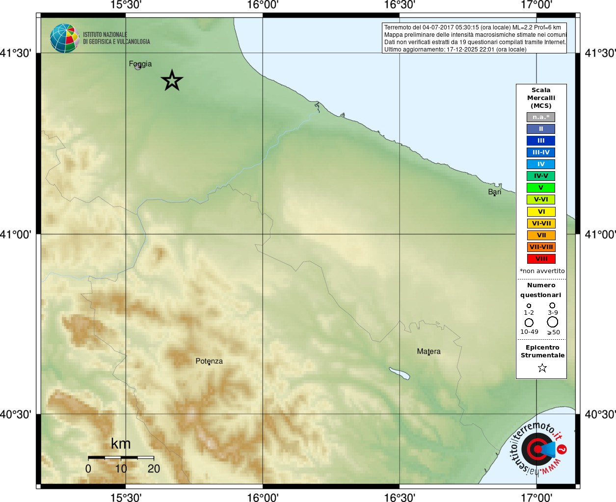 - 19 utilizzati per elaborare la mappa, su un totale di 19