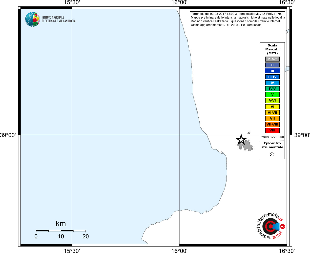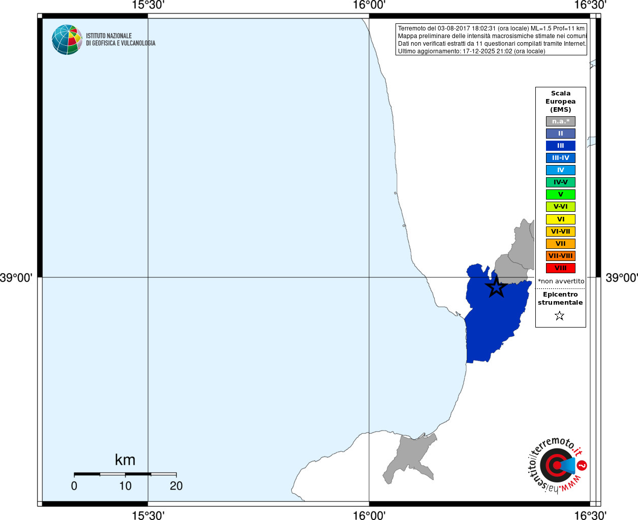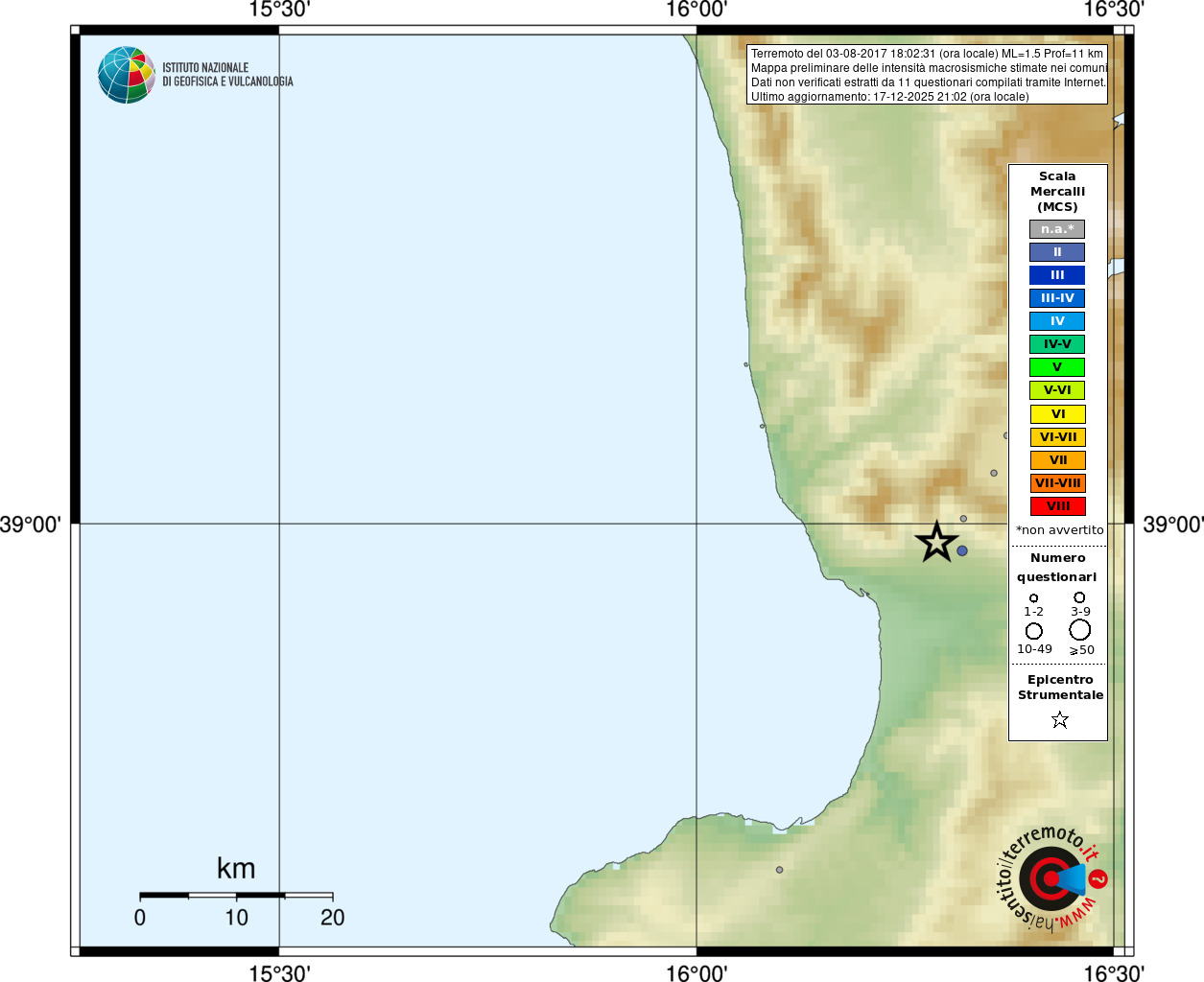 - Coordinate Epicentrali