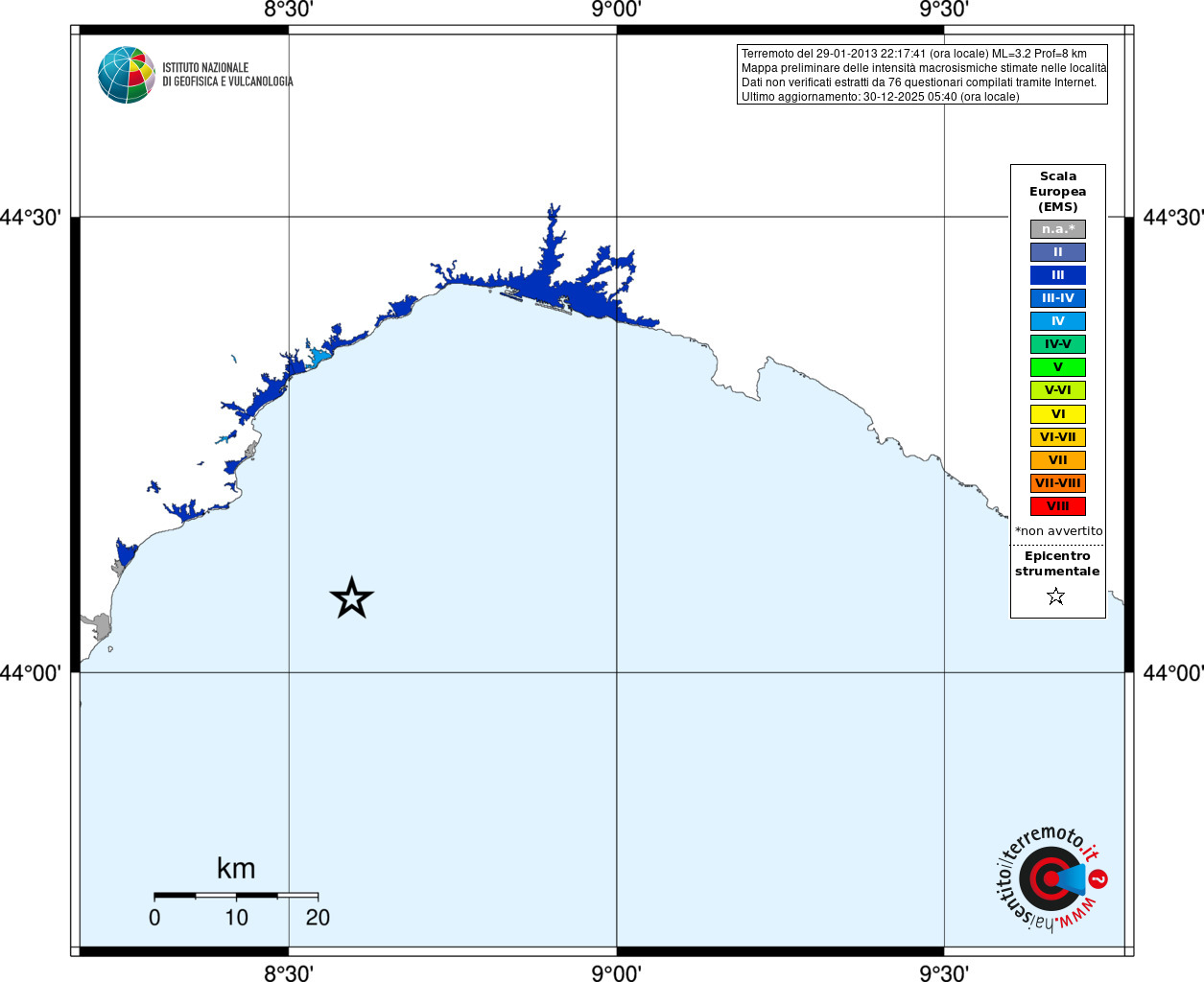 - Coordinate Epicentrali