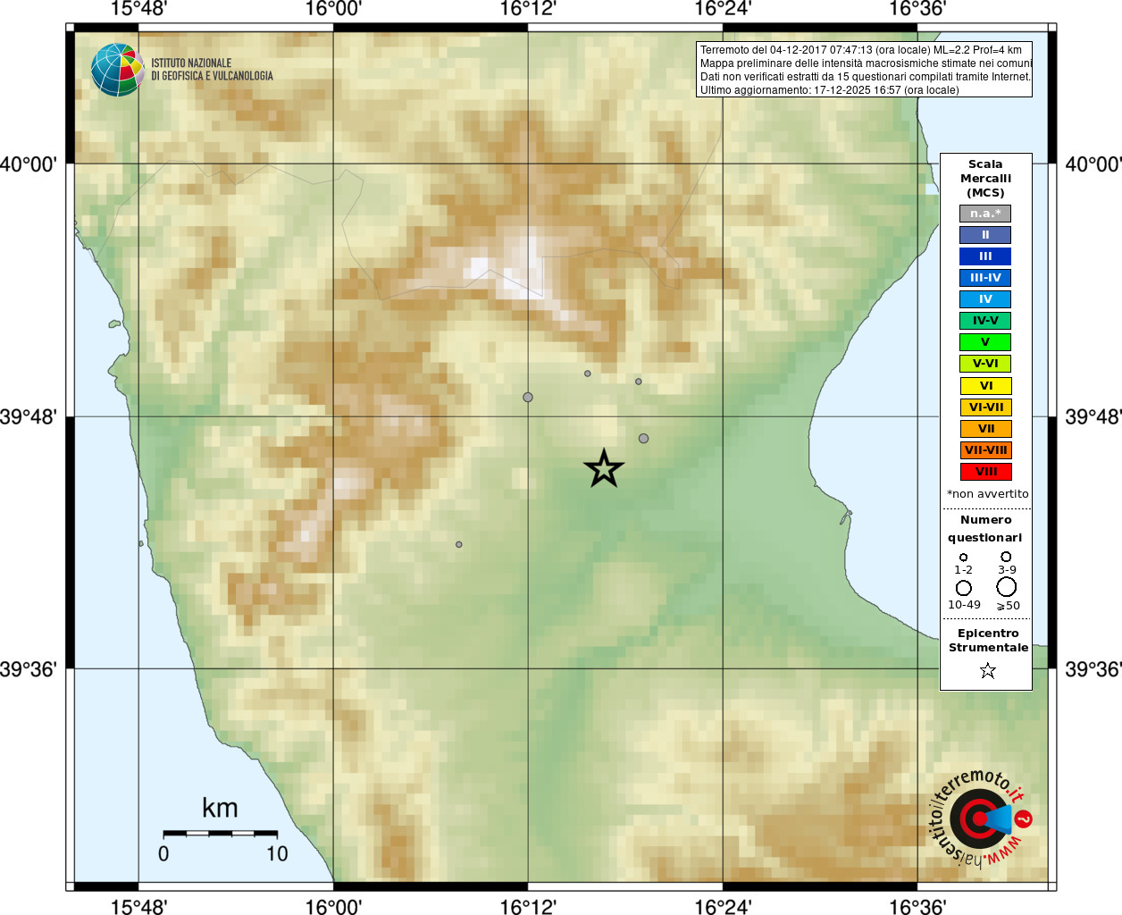 - Coordinate Epicentrali