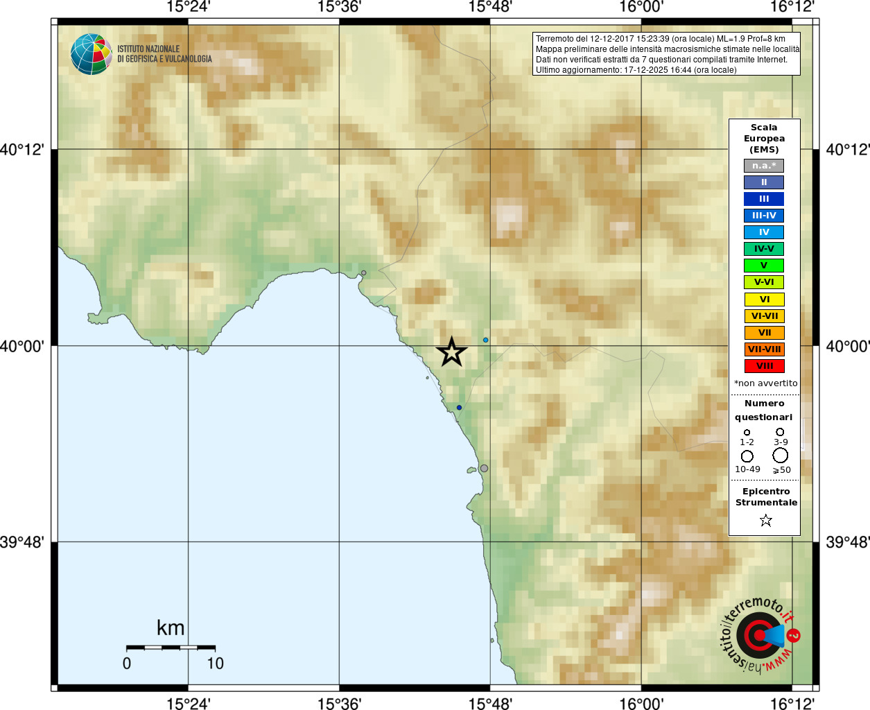- Coordinate Epicentrali