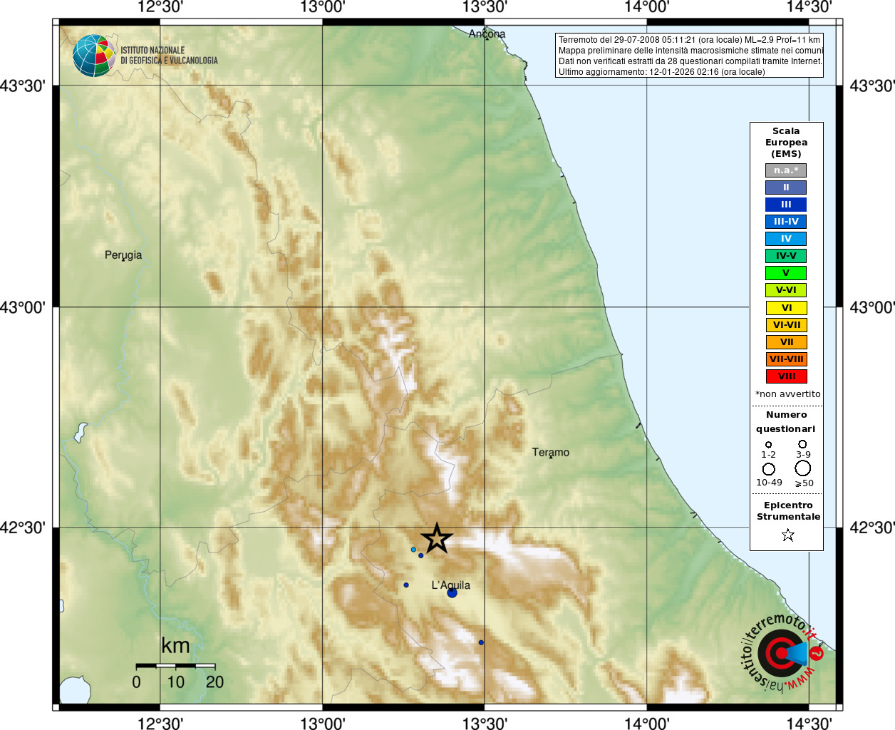 - 28 utilizzati per elaborare la mappa, su un totale di 29
