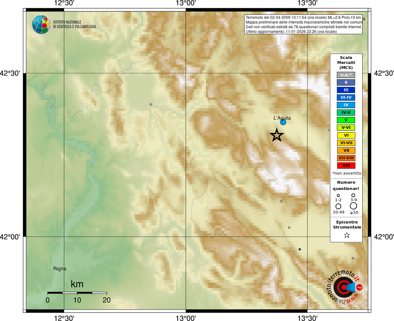 - 78 utilizzati per elaborare la mappa, su un totale di 87