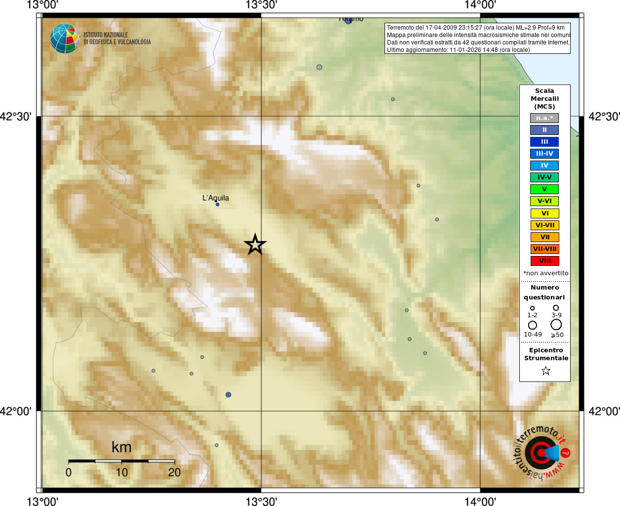 - 42 utilizzati per elaborare la mappa, su un totale di 43