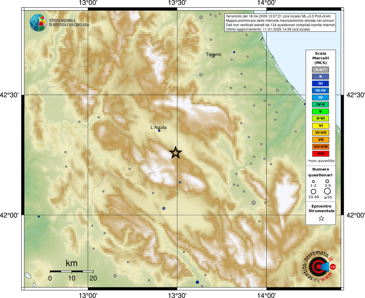 - 134 utilizzati per elaborare la mappa, su un totale di 137