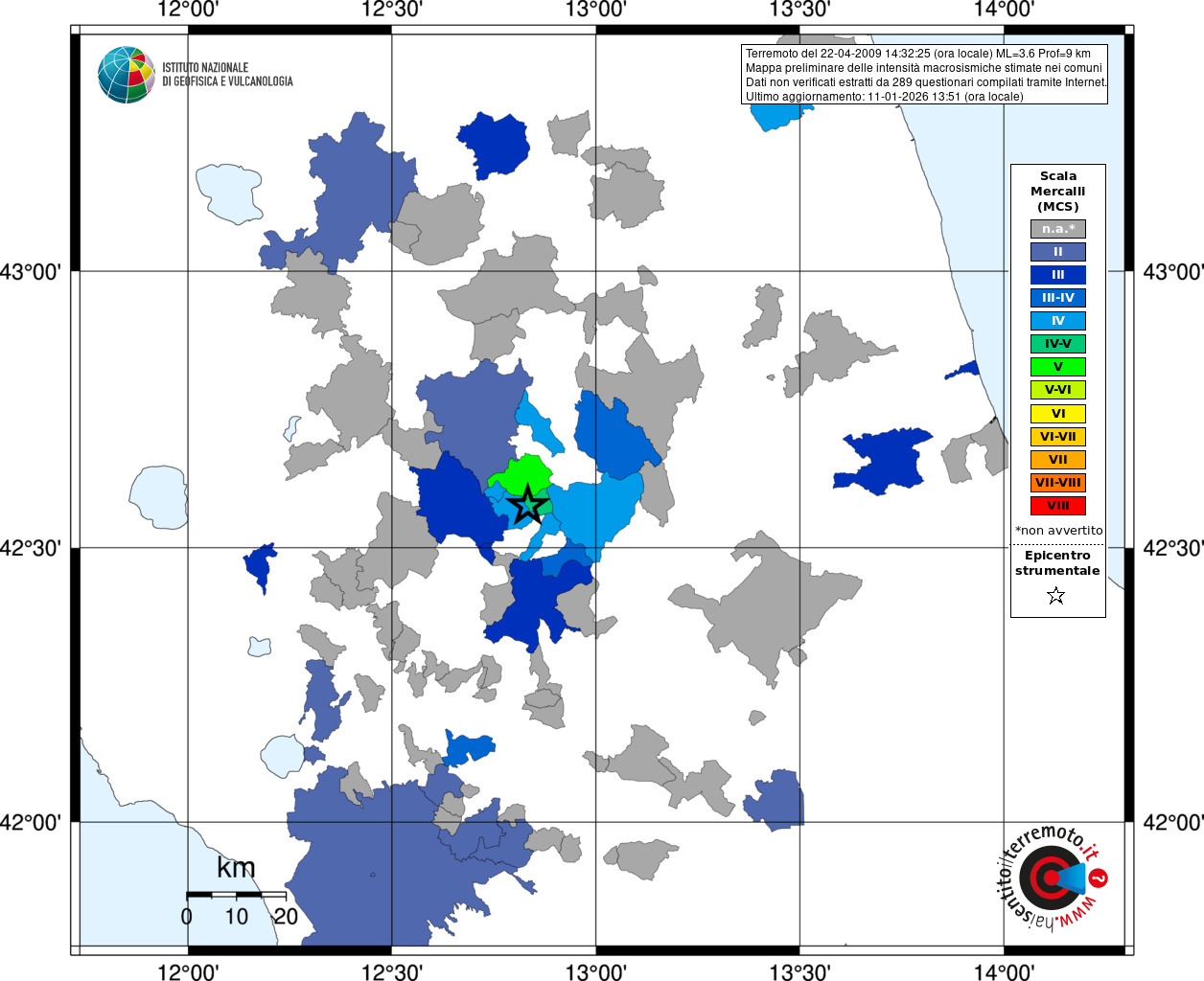 - 289 utilizzati per elaborare la mappa, su un totale di 306