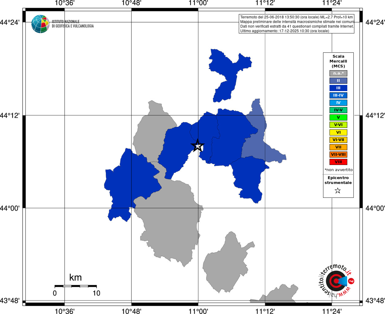 - 41 utilizzati per elaborare la mappa, su un totale di 45