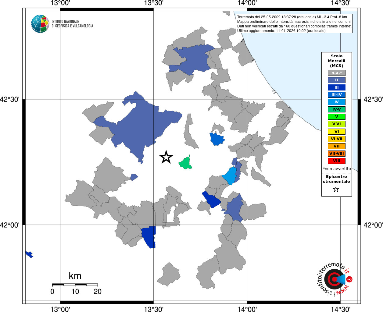 - 160 utilizzati per elaborare la mappa, su un totale di 169