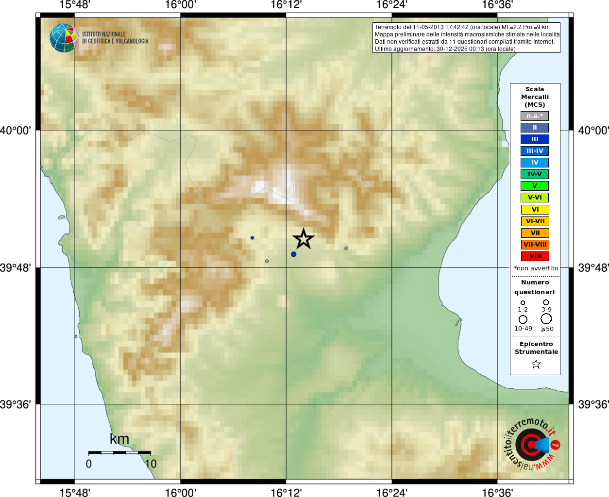 - Coordinate Epicentrali