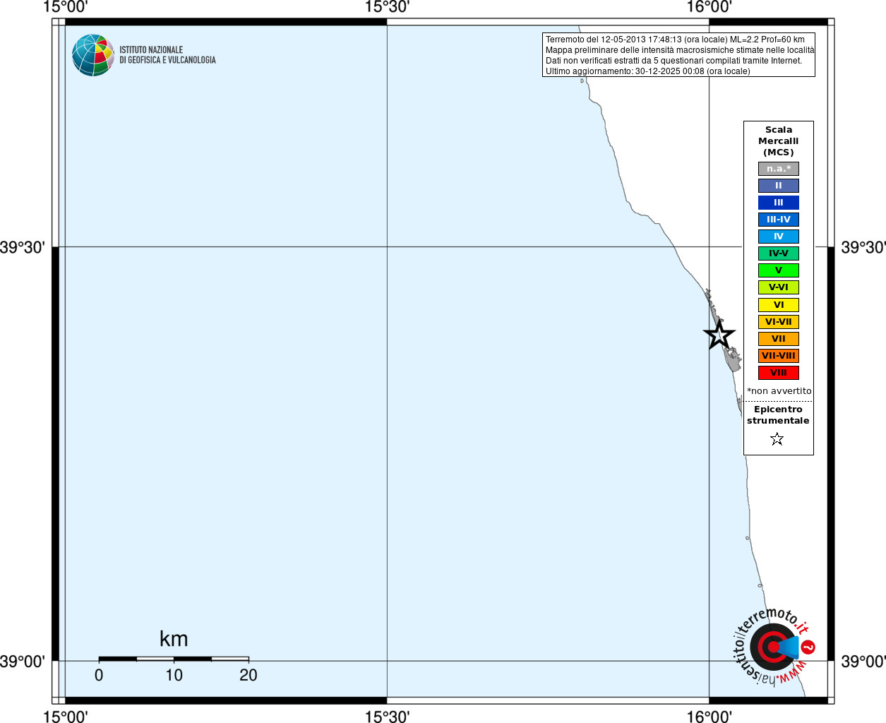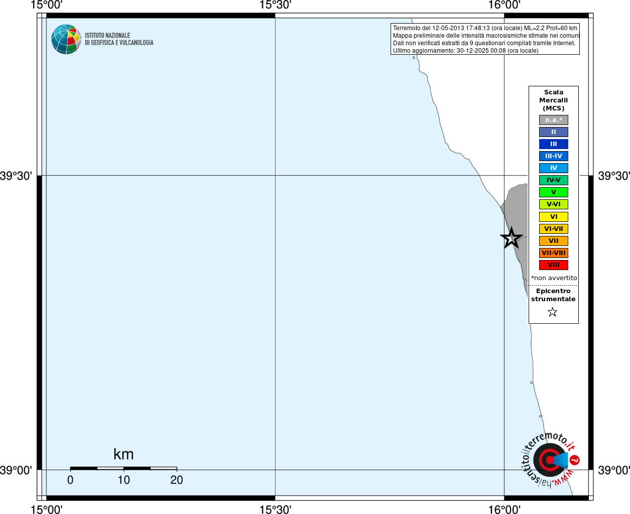 - Coordinate Epicentrali