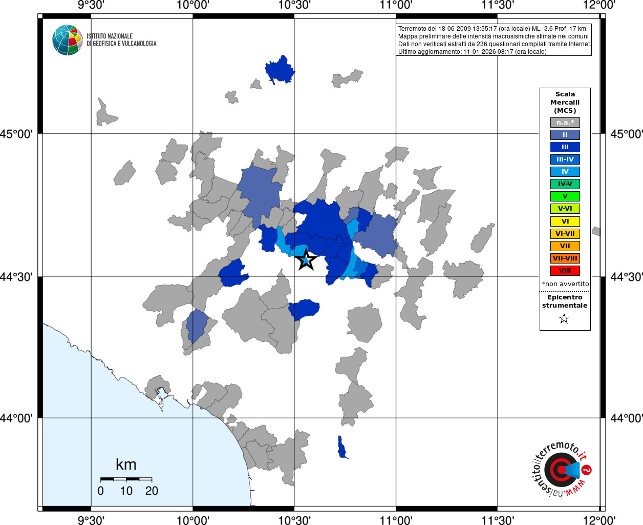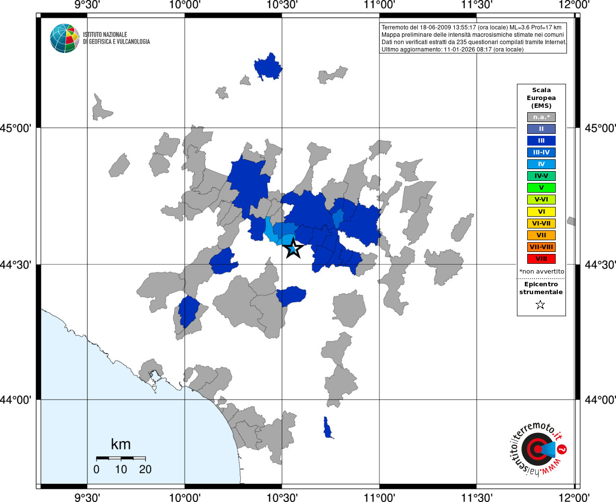 - Coordinate Epicentrali