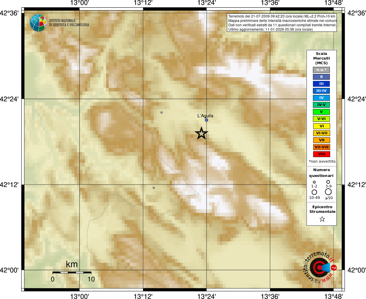 - 11 utilizzati per elaborare la mappa, su un totale di 13