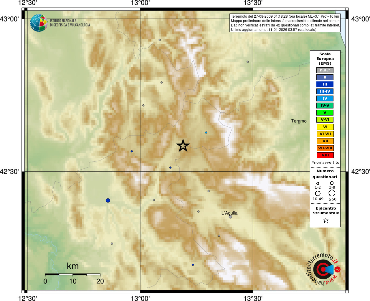 - 42 utilizzati per elaborare la mappa, su un totale di 43